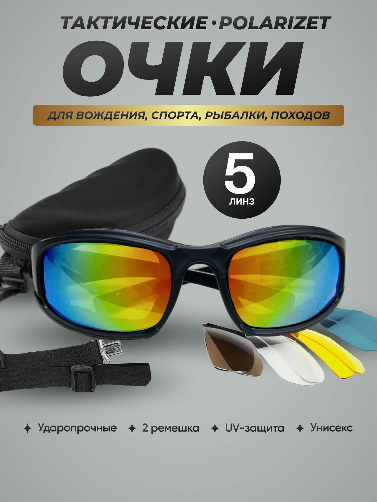 Ниже Вы можете прочитать отзывы на Очки тактические для вождения, спорта, рыбалки 5 в 1. Антифара, солнцезащитные, поляризационные со сменными линзами, ознакомится с подробными характеристиками, посмотреть интересные обзоры и фотографии на Очки тактические для вождения, спорта, рыбалки 5 в 1. Антифара, солнцезащитные, поляризационные со сменными линзами.