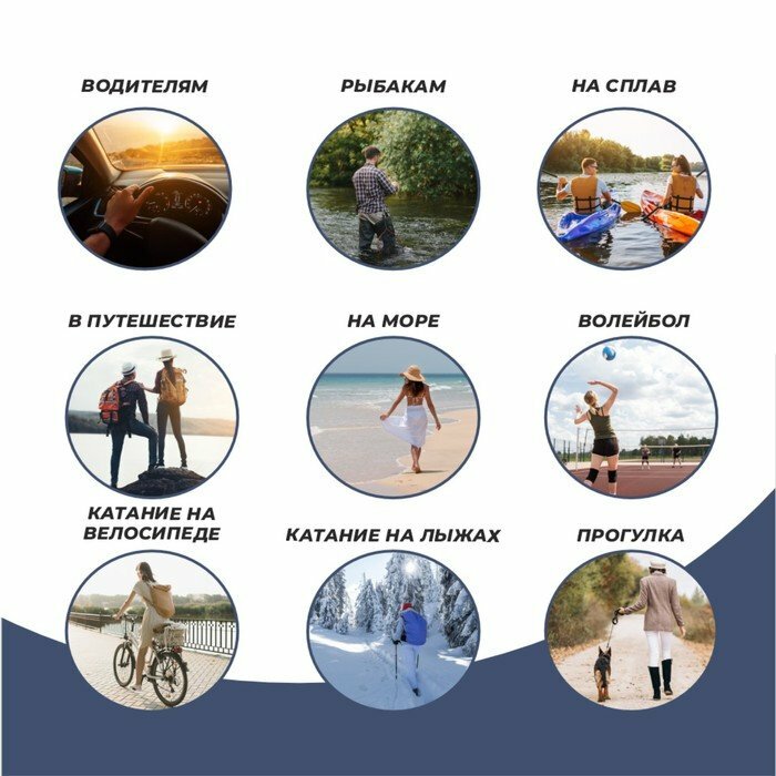 | Особенности очков | складные, спортивные, ударопрочные |