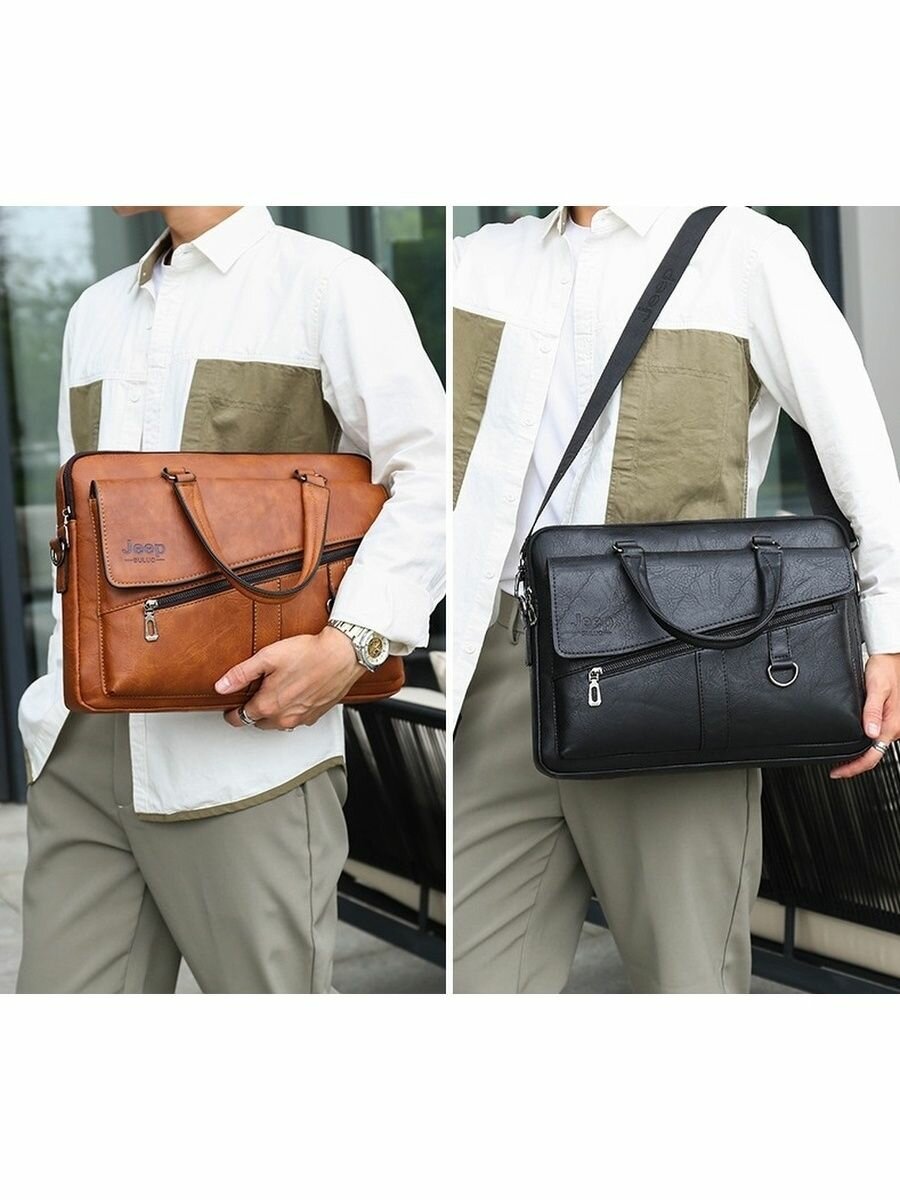 Портфель мужской для документов с ремнем из эко кожи, деловая сумка через плечо интересное: