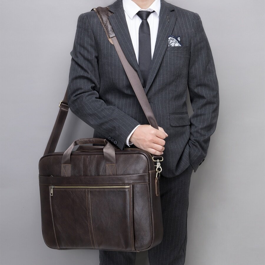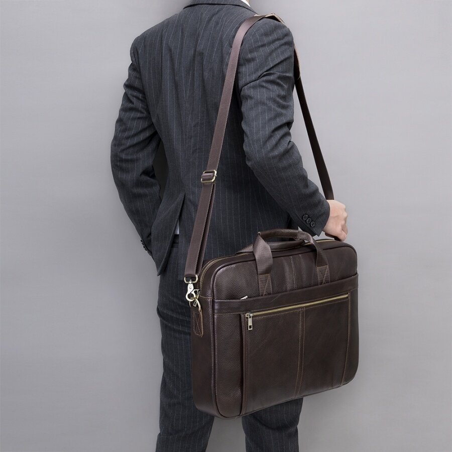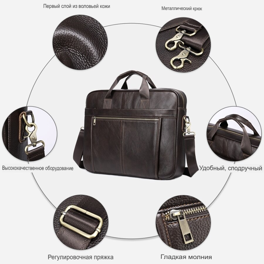 Портфель из натуральной кожи коричневый для ноутбука до 17", Marrant интересное: