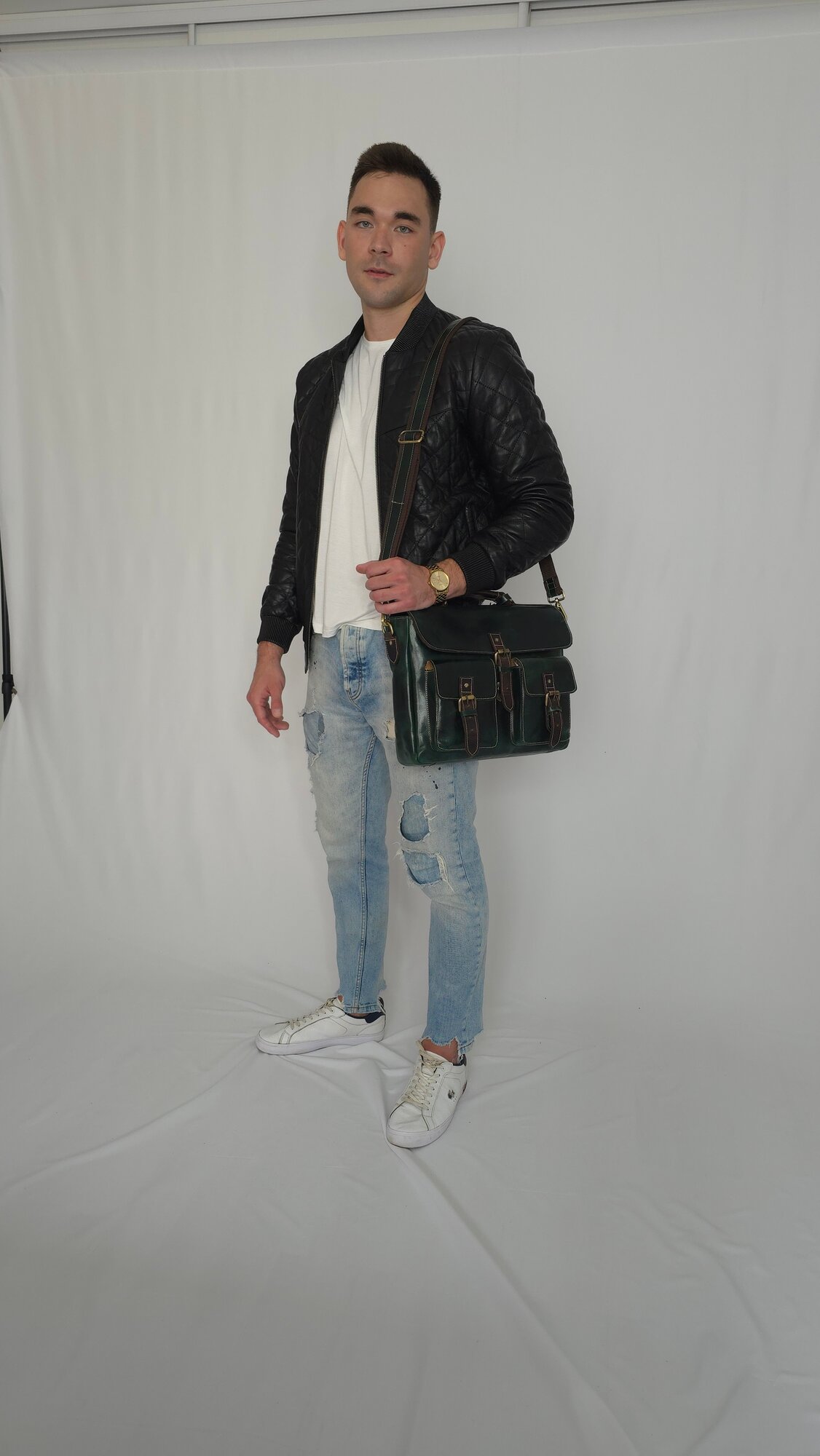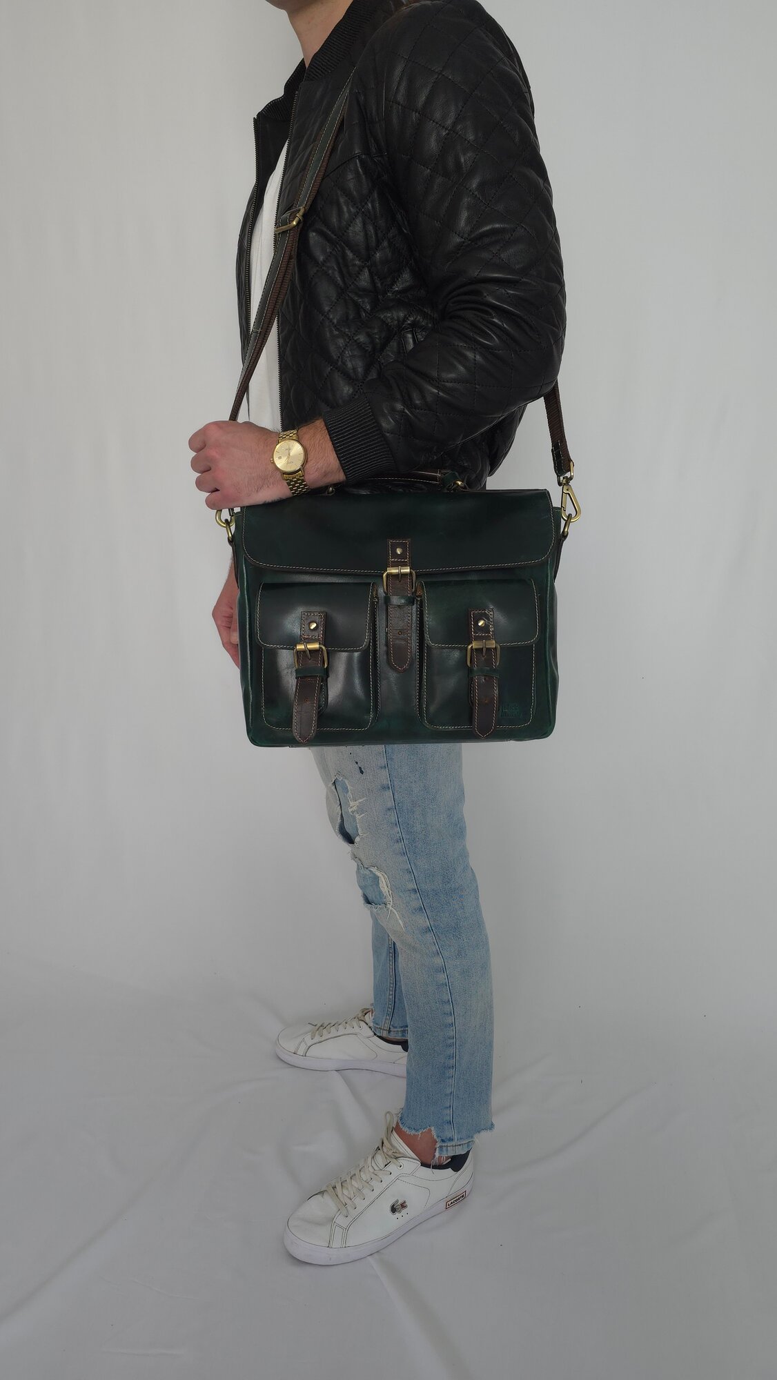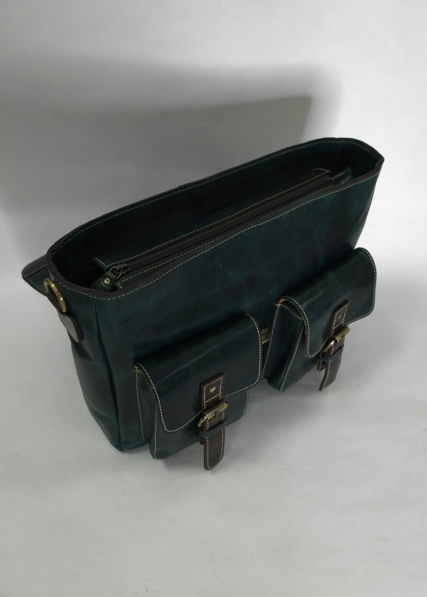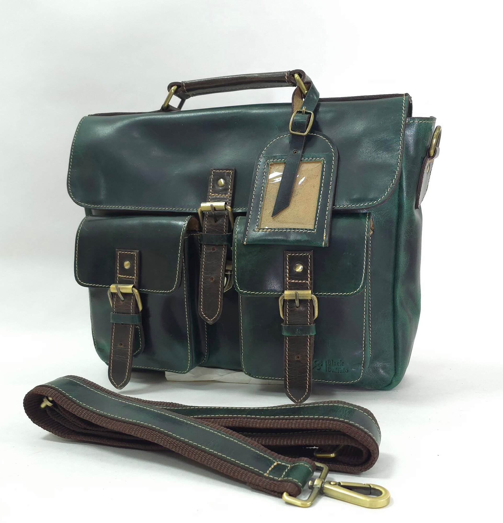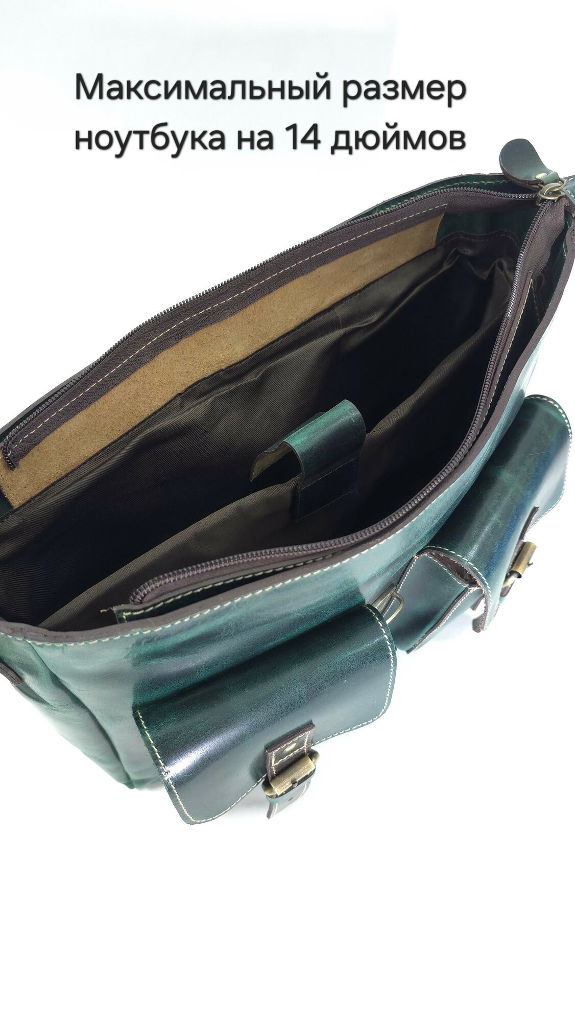Портфель из натуральной кожи буйвола, зеленый интересное: