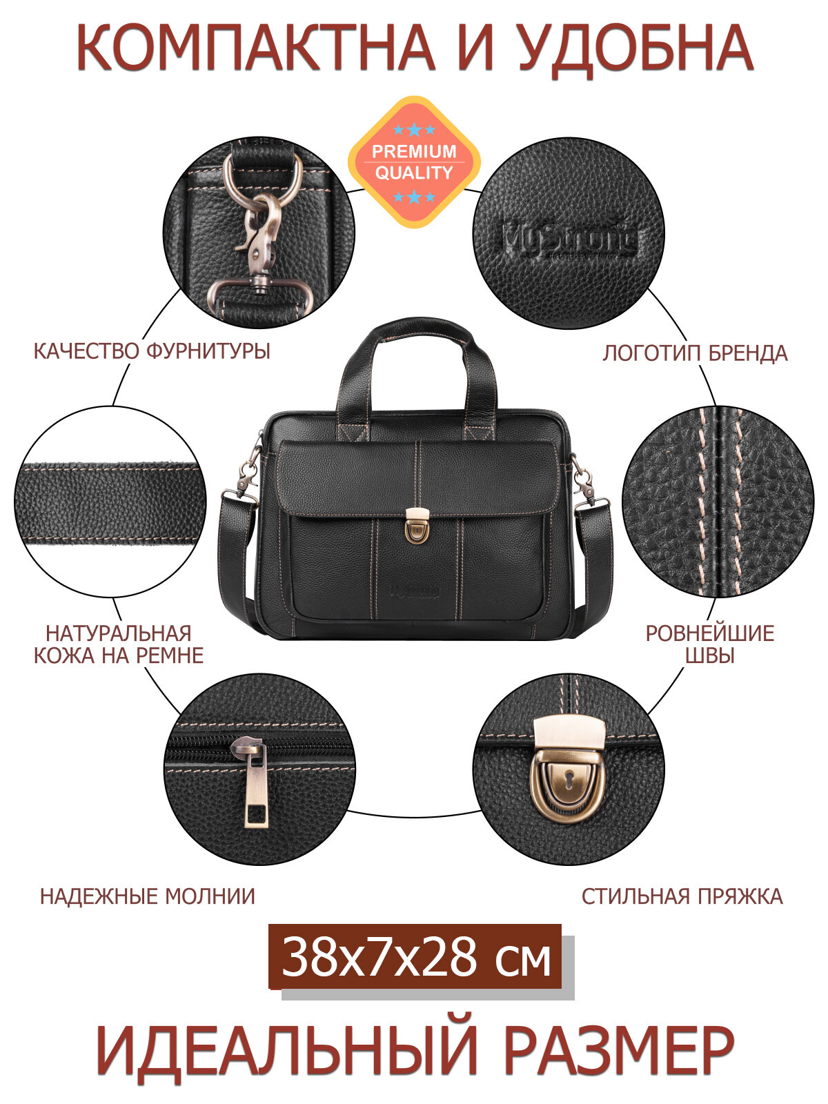 | Комплектация | 1 - Сумка-портфель; 1 - Плечевой ремень; 1 - Защитная упаковка; ∞ Теплота и усердие мастеров, выпускающих в свет качественные аксессуары MyStrong®. |