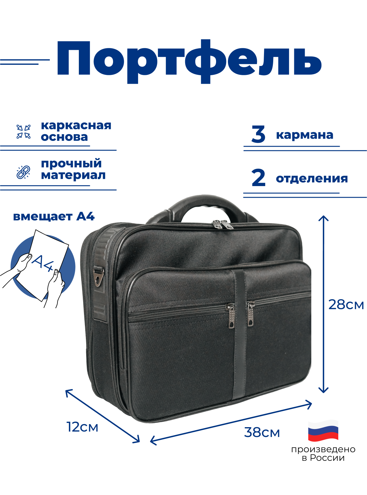 Портфель, фактура матовая, черный
