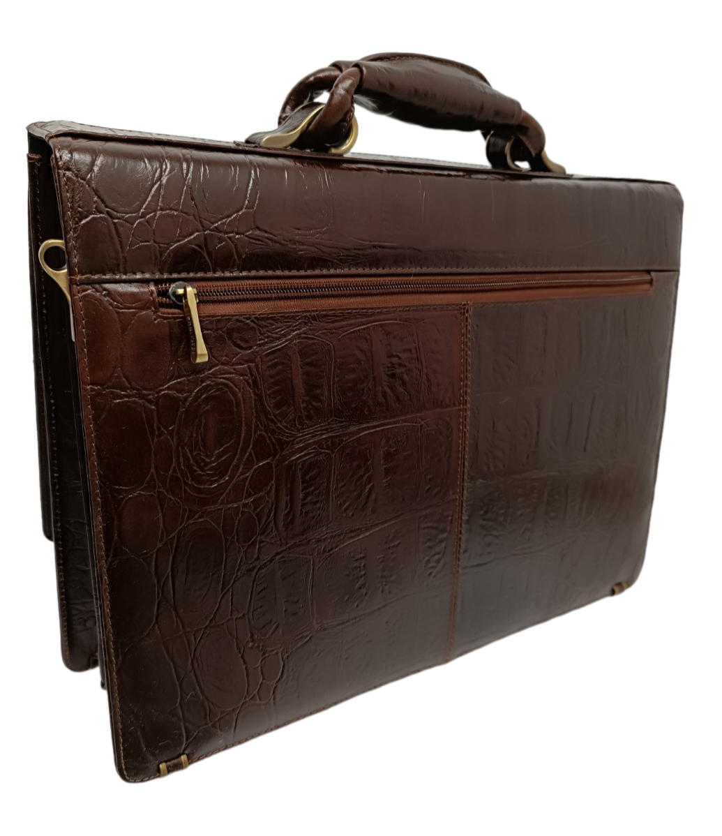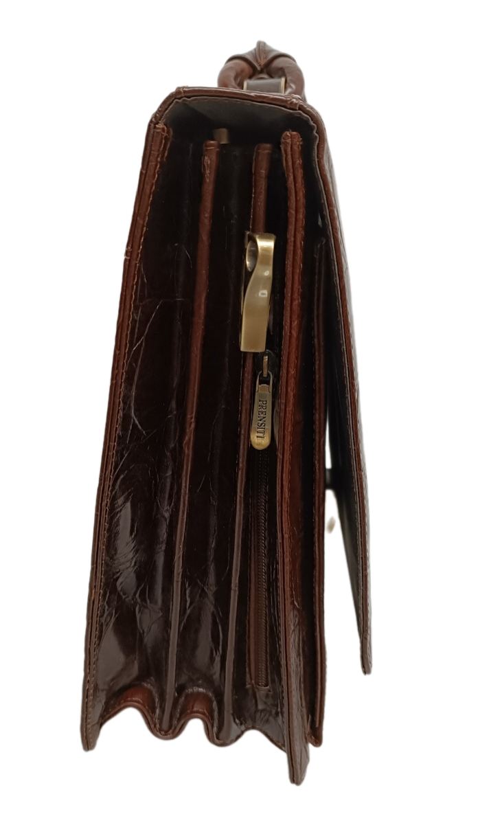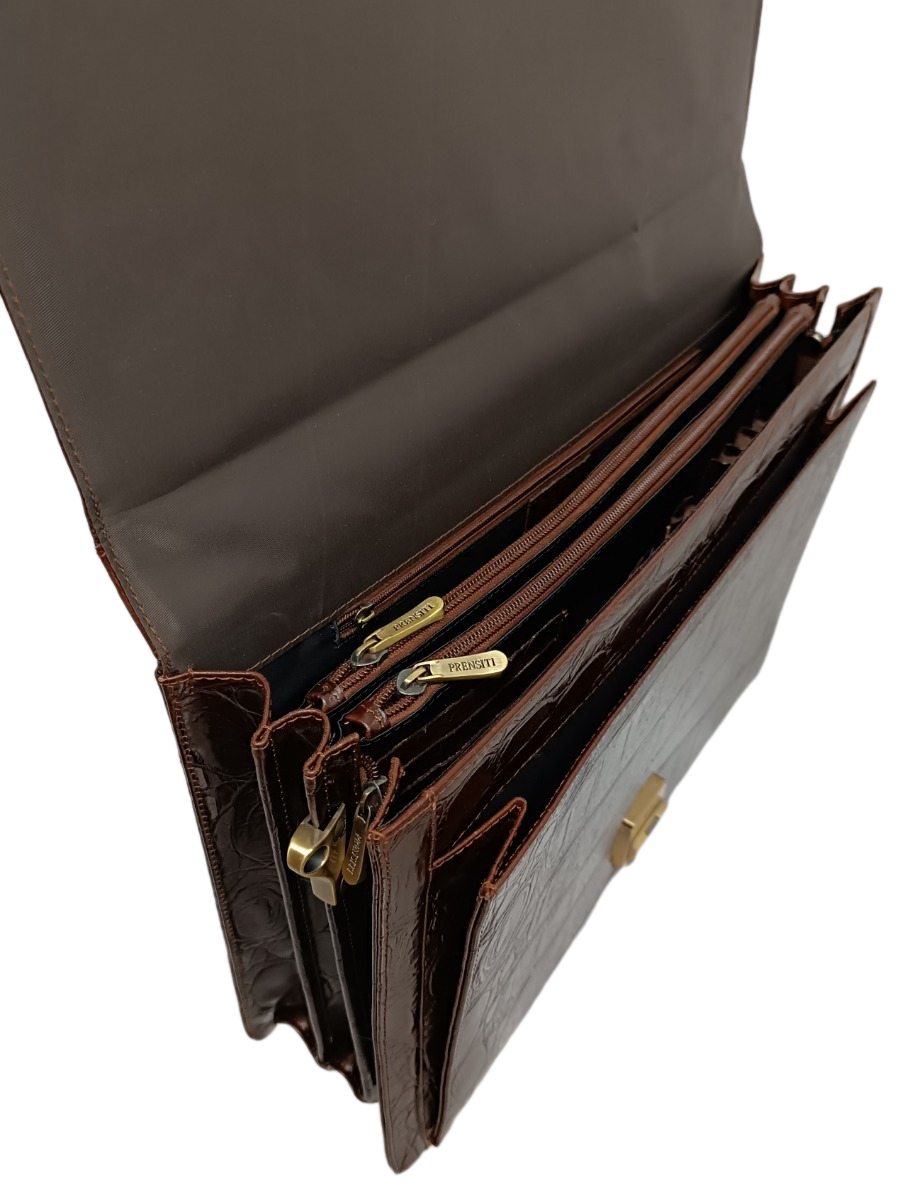 Портфель Prensiti, фактура под рептилию, тиснение, коричневый