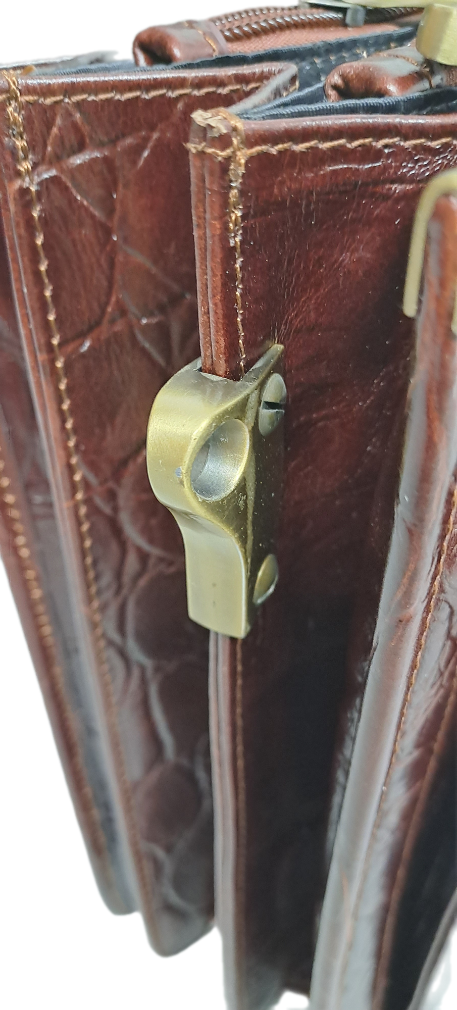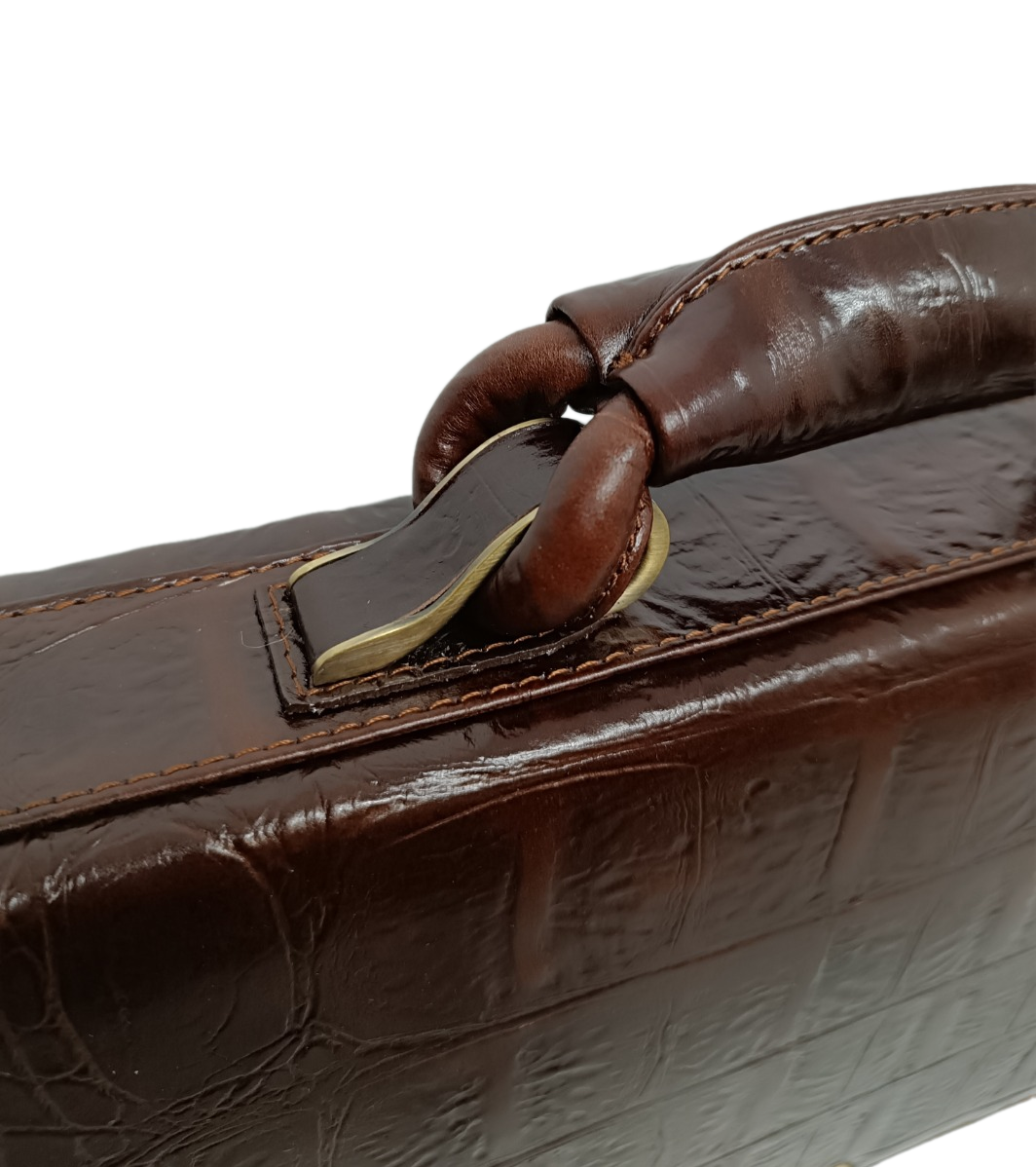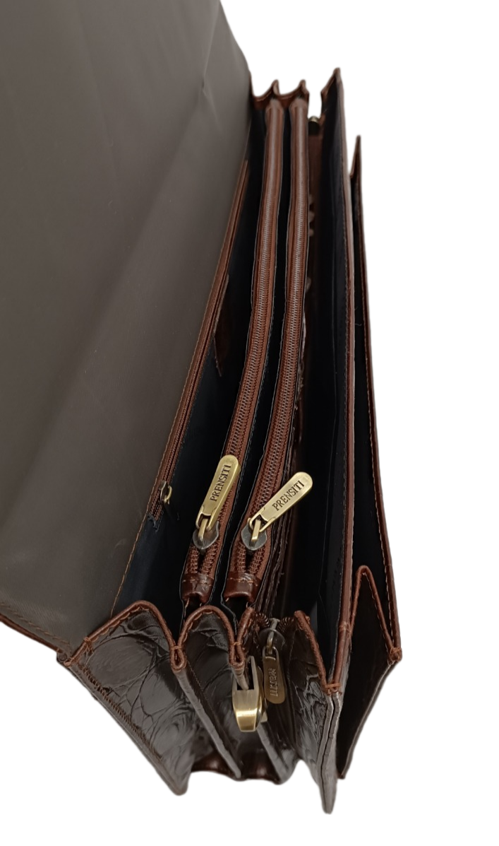 Портфель Prensiti, фактура под рептилию, тиснение, коричневый