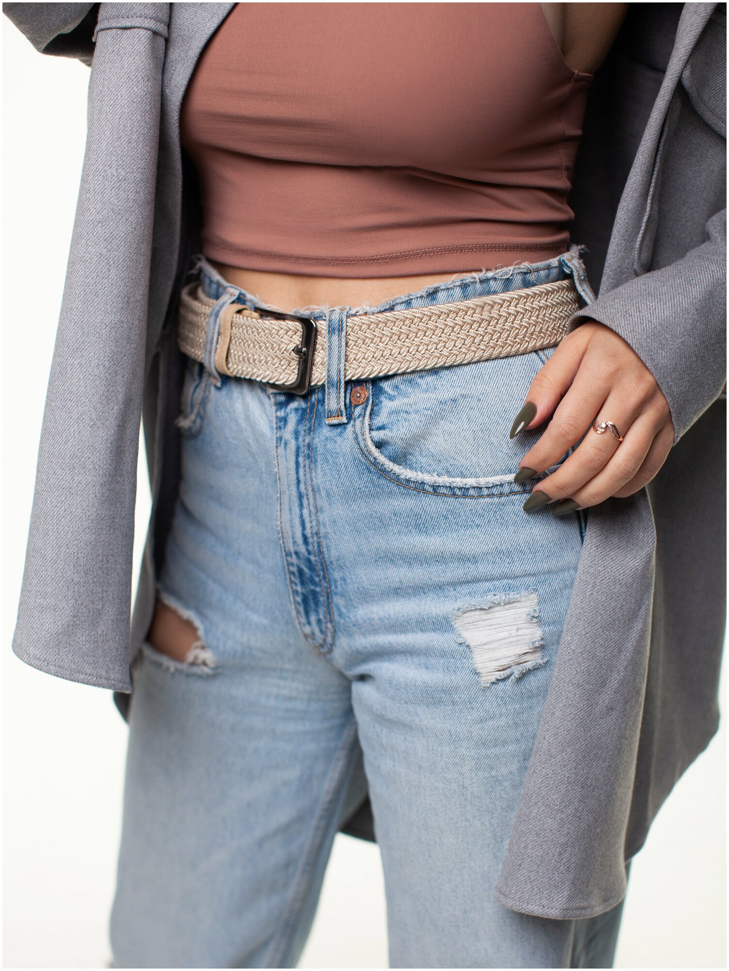 СохранитьРемень - резинка стандартный, плетеный ремень унисекс для врослых, эластичный ремень, 100 см, бежевый интересное: