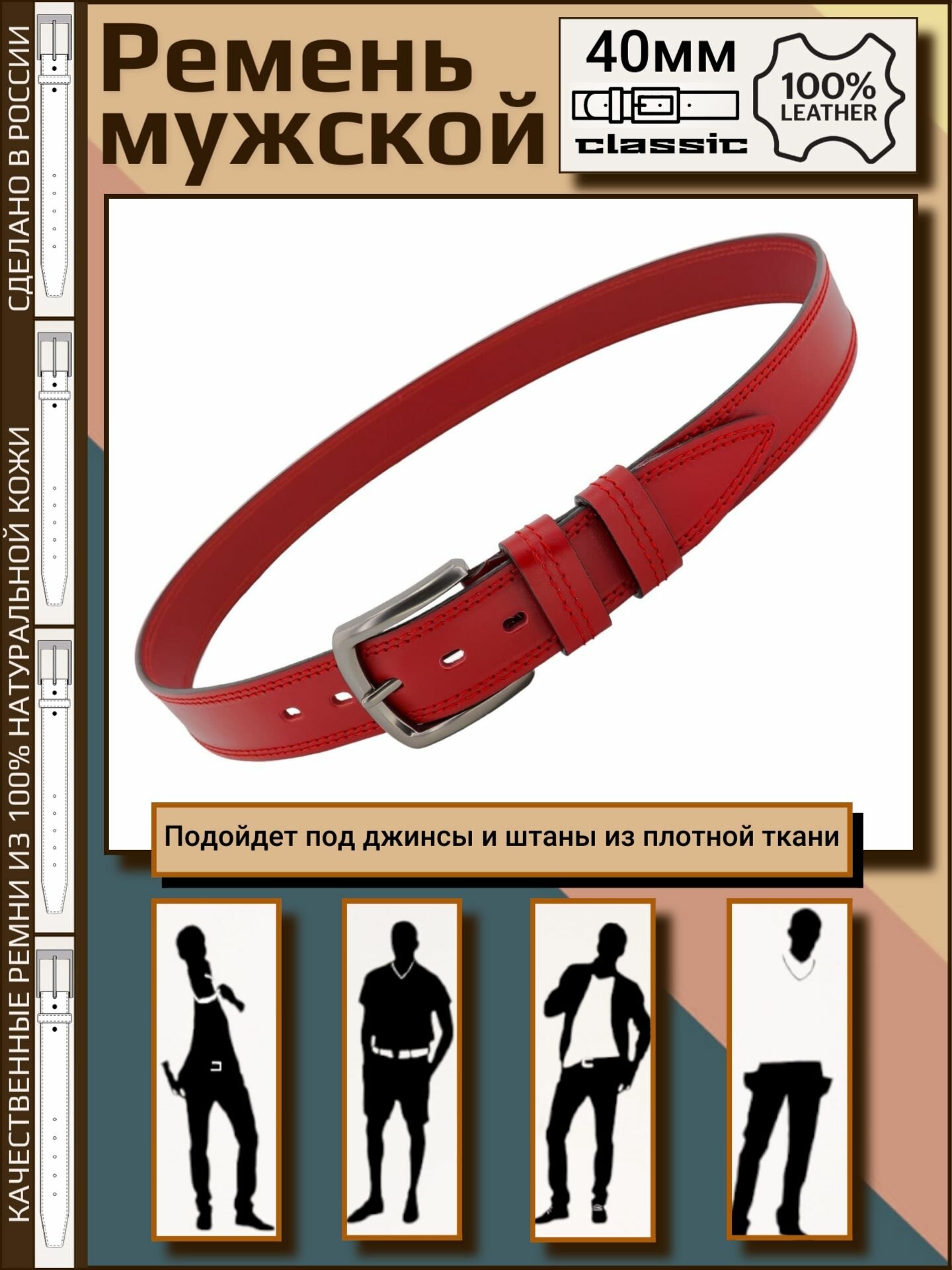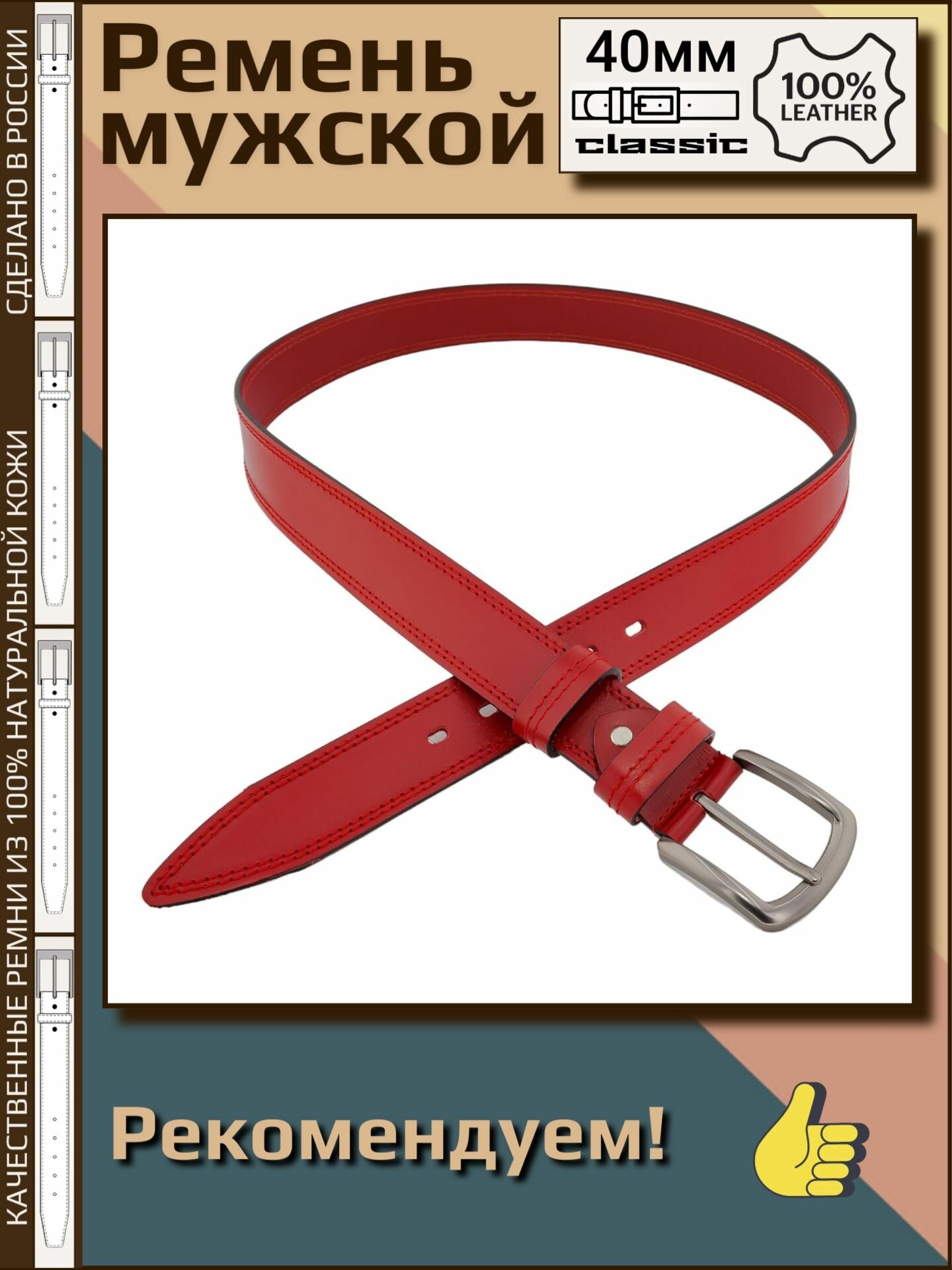 СохранитьРемень мужской кожаный Aksy Belt красный, 40мм, 2 строчка, Италия, 110 см интересное: