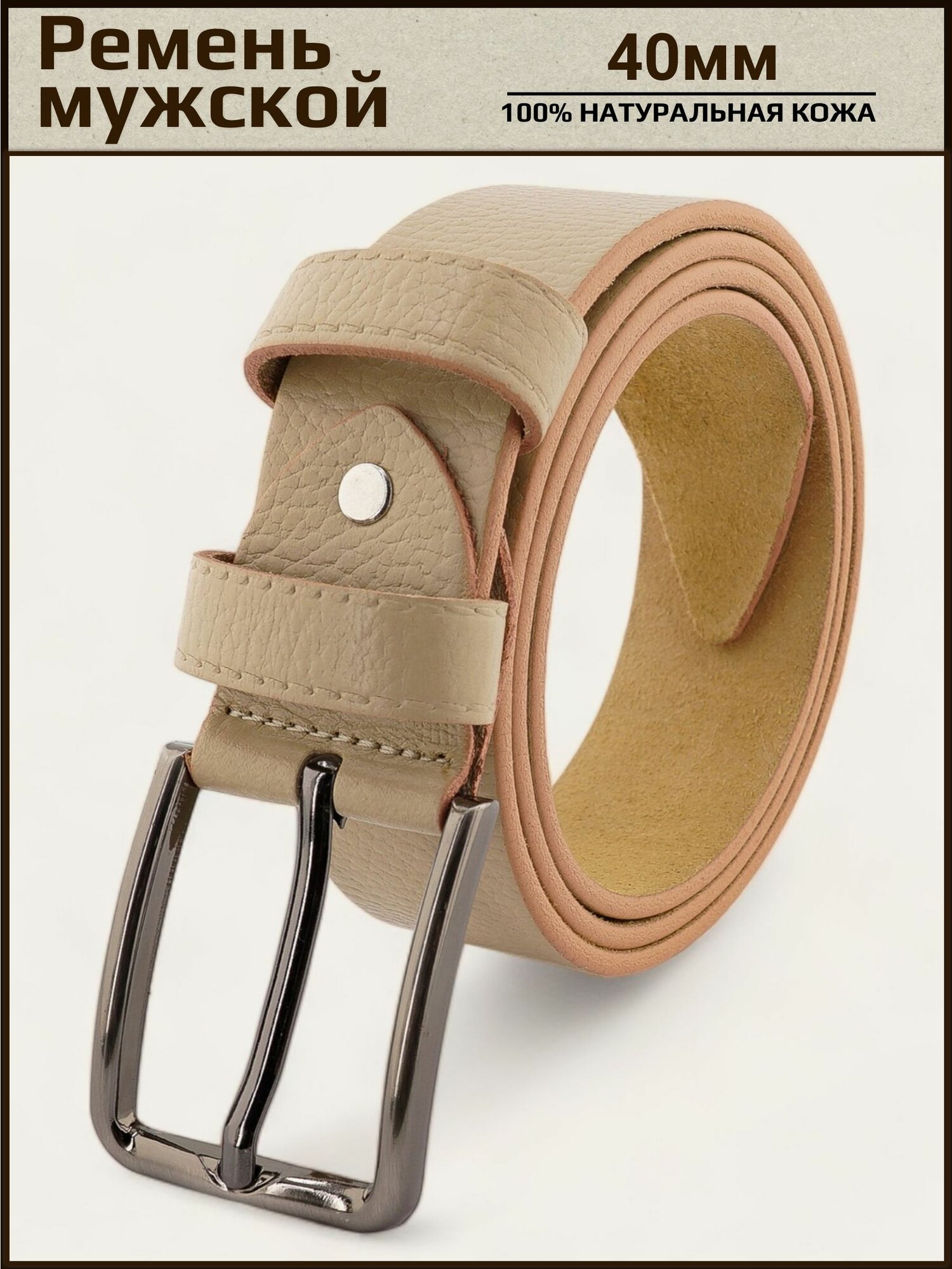 Ремень мужской кожаный, AKSY BELT, 40 мм, бежевый, фактурный, 120 см