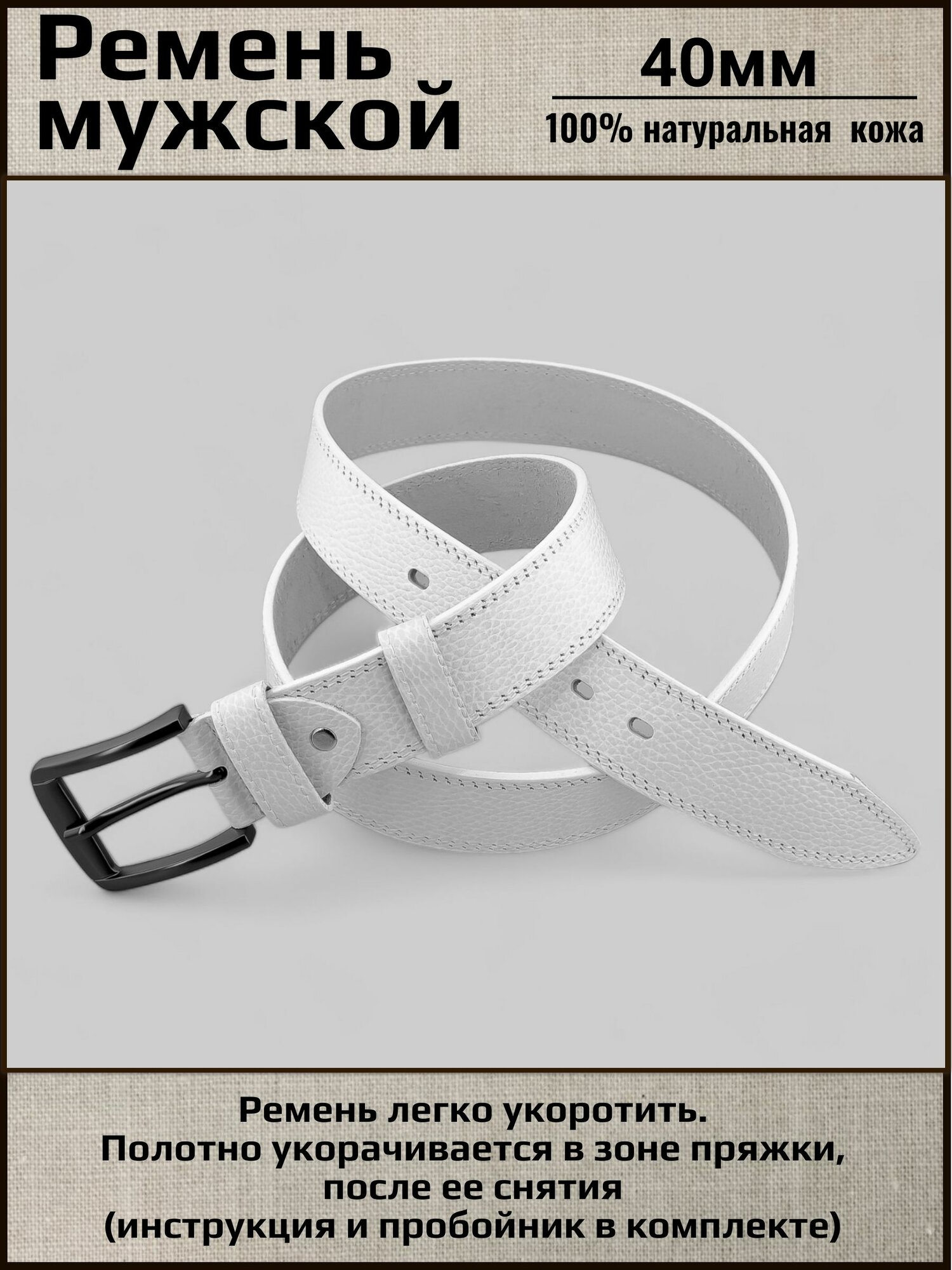 Ремень мужской кожаный AKSY BELT белый, 40мм, фактурный, прошитый, 120 см