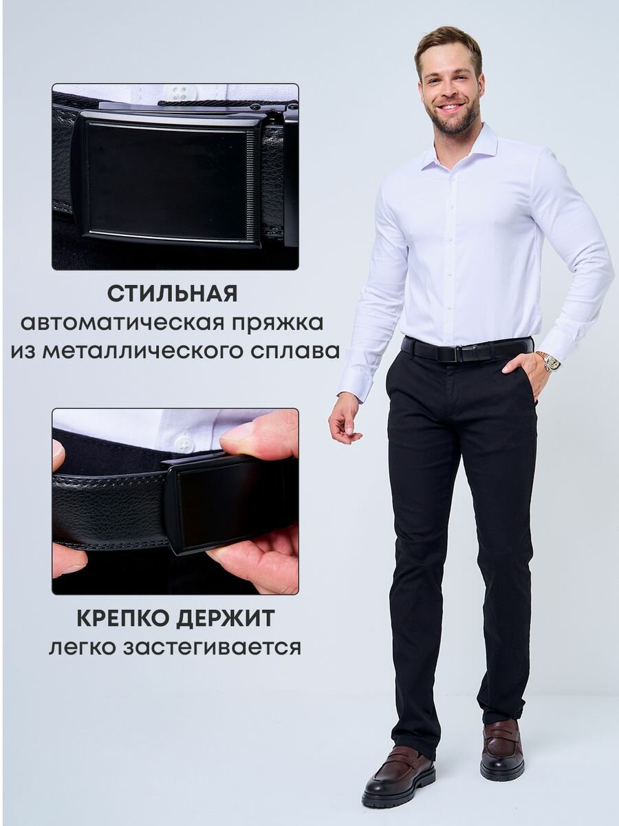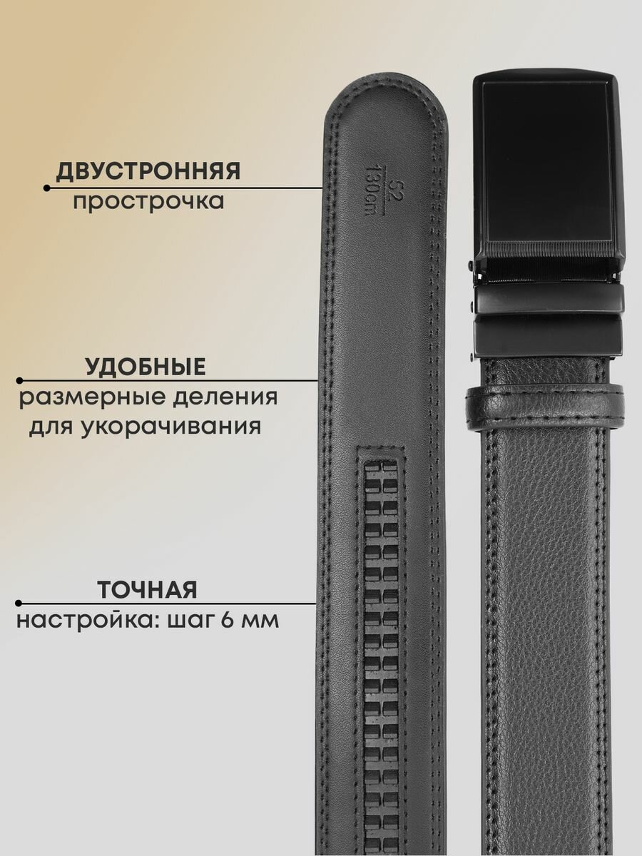 Ремень AksyBelt для мужчин, размер 120, черный гладкий