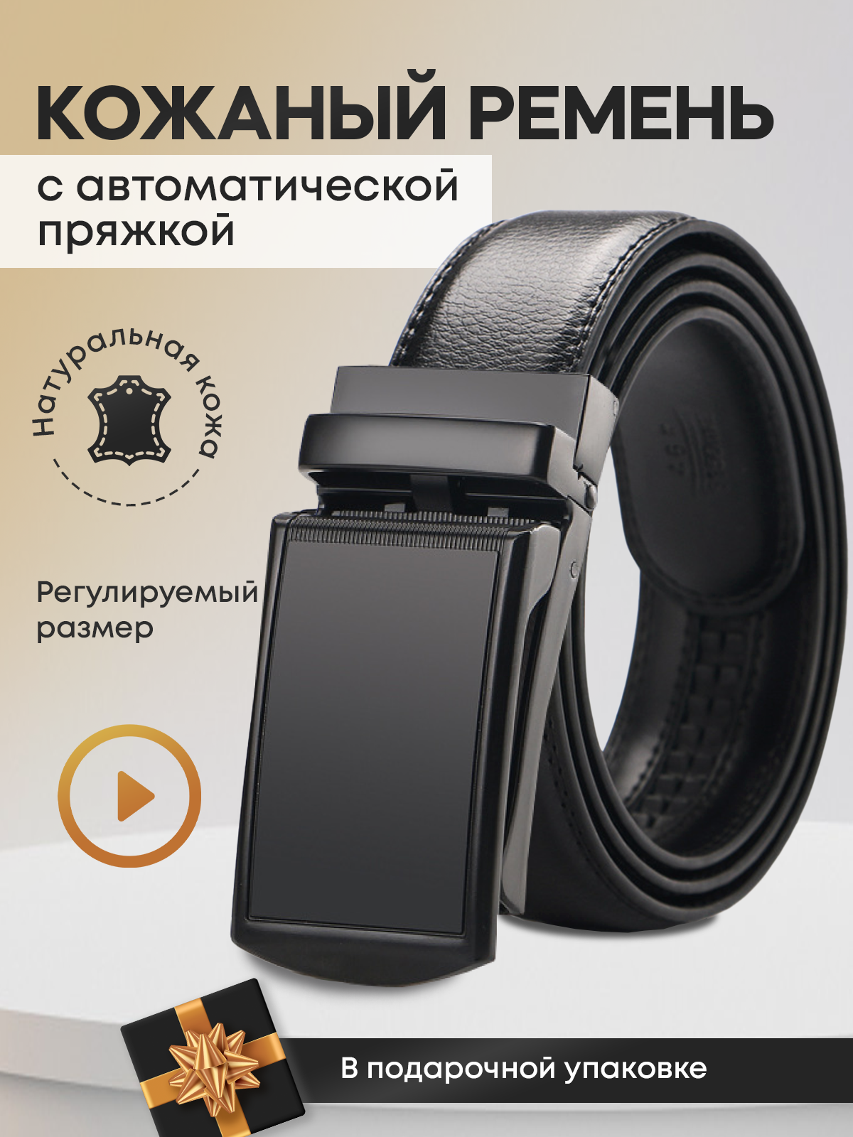 Ремень мужской кожаный в подарочной коробке интересное: