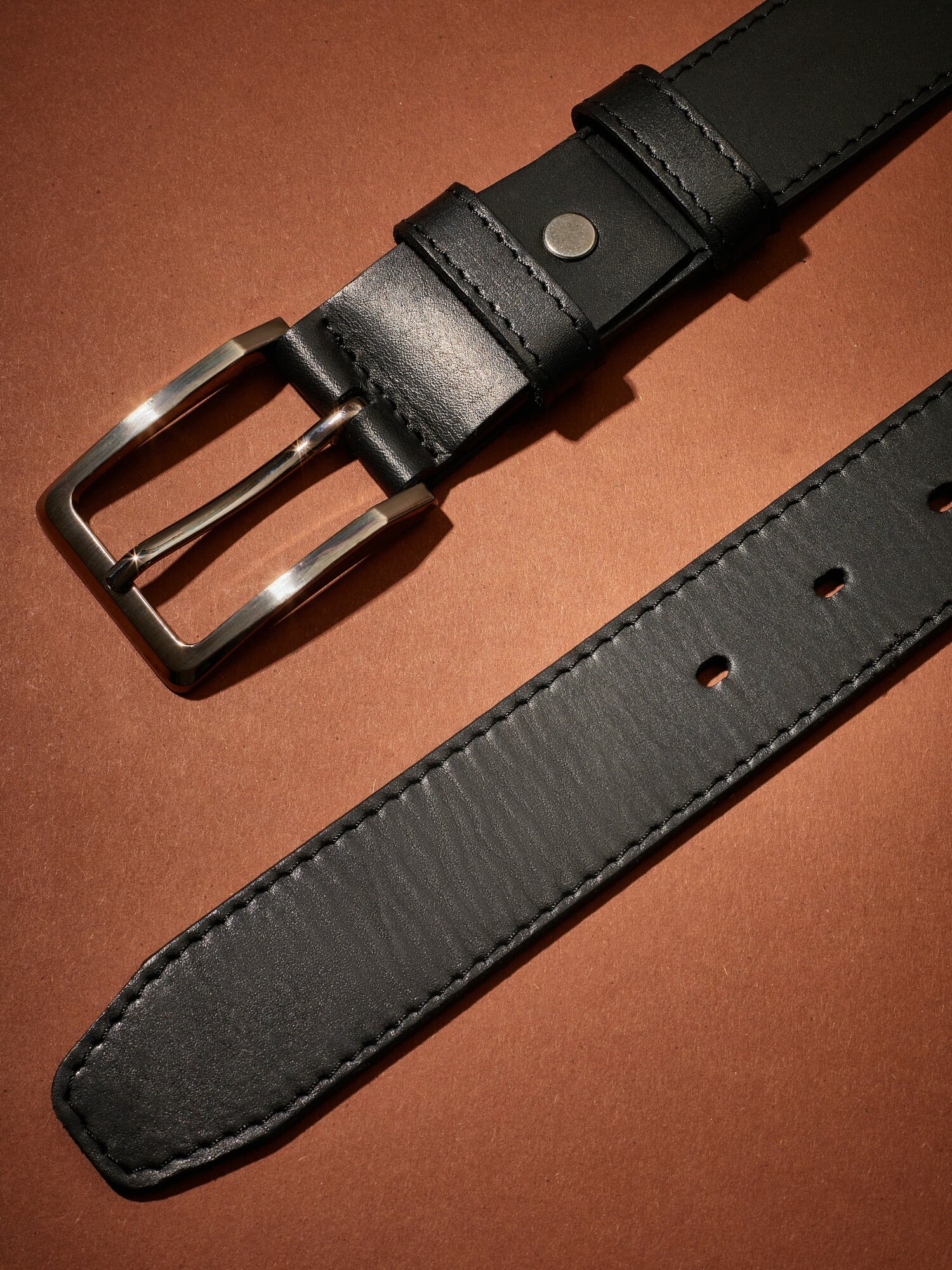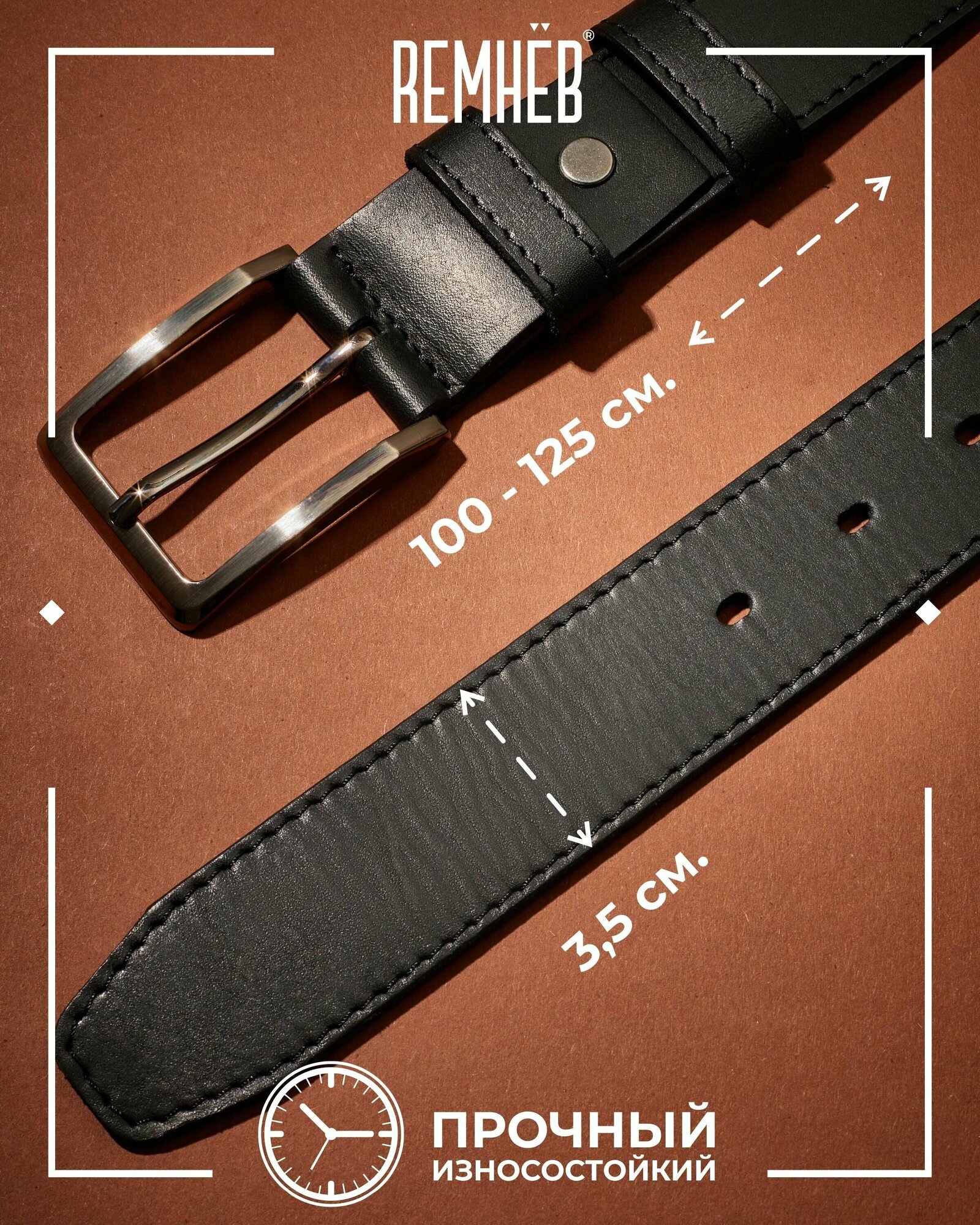 Ремень мужской кожаный для брюк и джинс из натуральной кожи, черный, 125 см интересное: