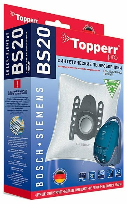 Синтетический пылесборник Тopperr BS 20 для пылесосов Bosch, Siemens, 4 шт. + 1 фильтр