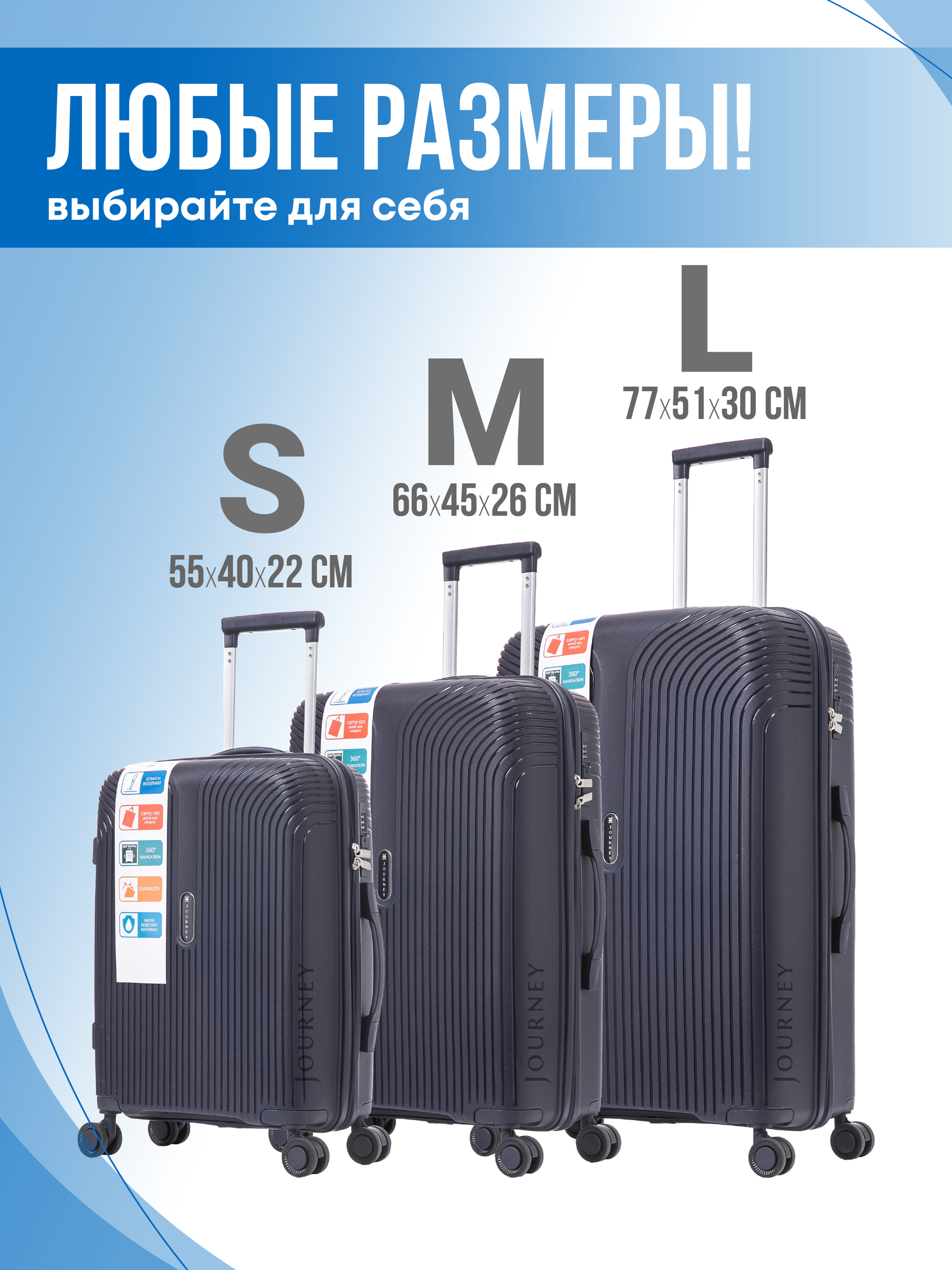 Чемодан JOURNEY, полипропилен, прочный, износостойкий, водонепроницаемый, 43 л, размер S, Черный