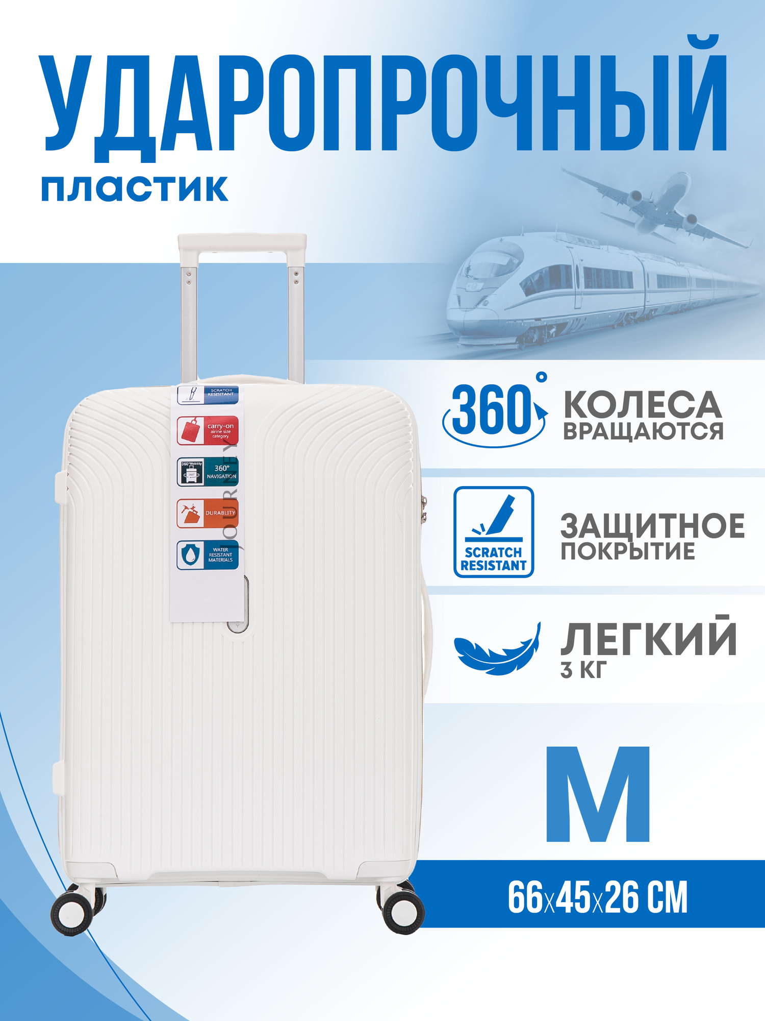 Купить Чемодан JOURNEY, полипропилен, прочный, износостойкий, водонепроницаемый, 68 л, размер M, Белый
