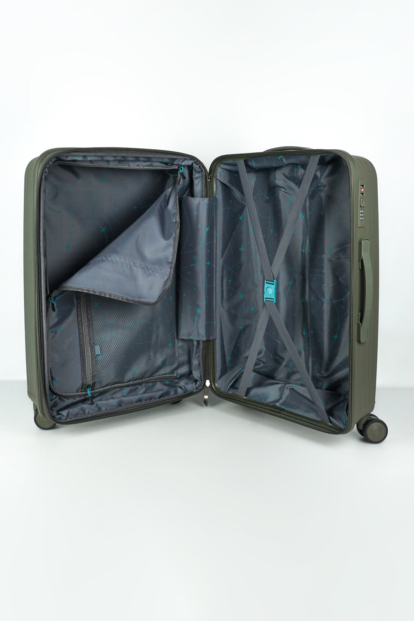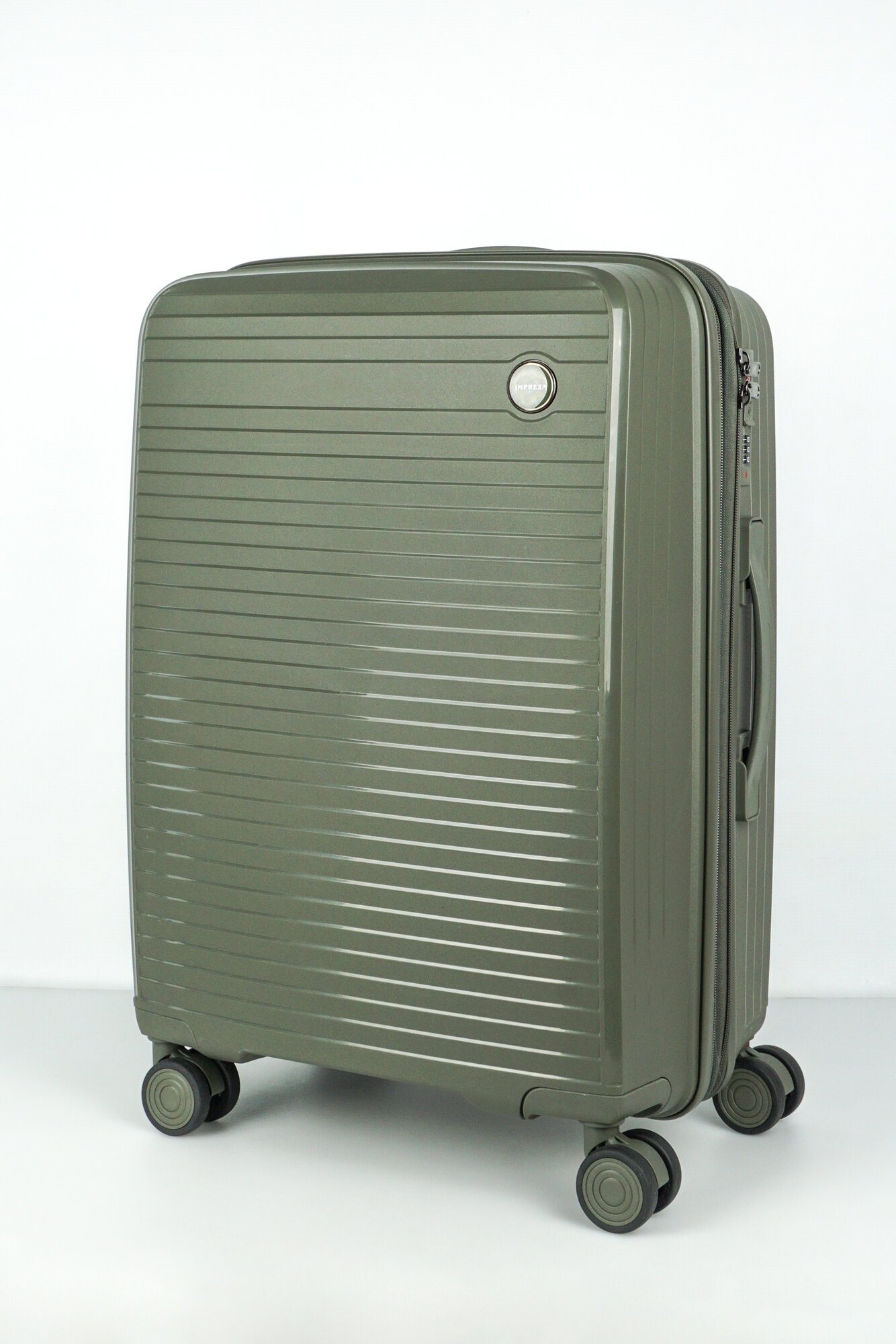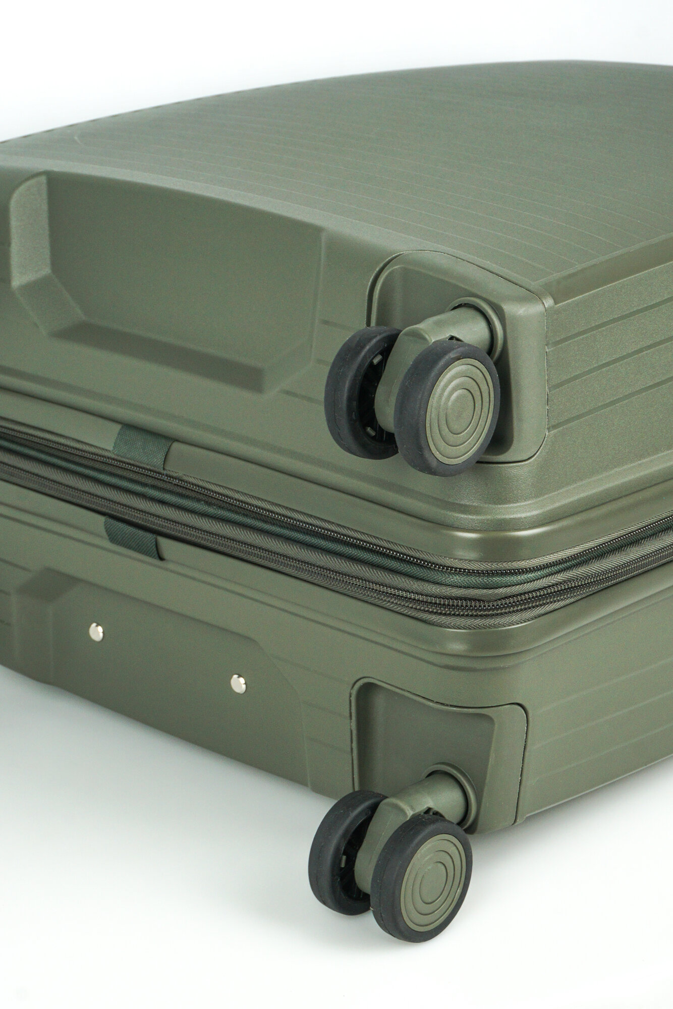 Купить Чемодан Sweetbags средний из полипропилена с расширением на 4-х колесах с TSA замком (Панцирь) темно-зеленый M+