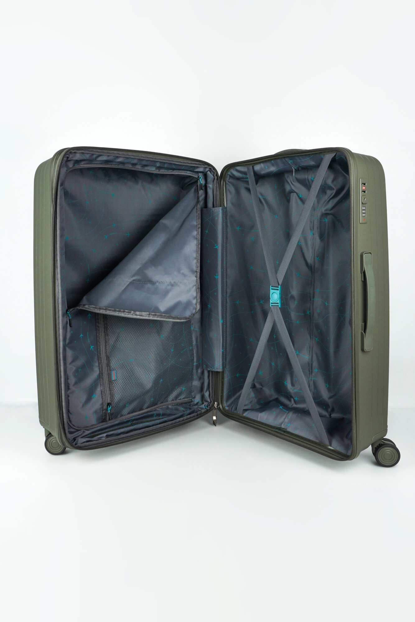 Купить Чемодан Sweetbags большой из полипропилена с расширением на 4-х колесах с TSA замком (Панцирь) темно-зеленый XL