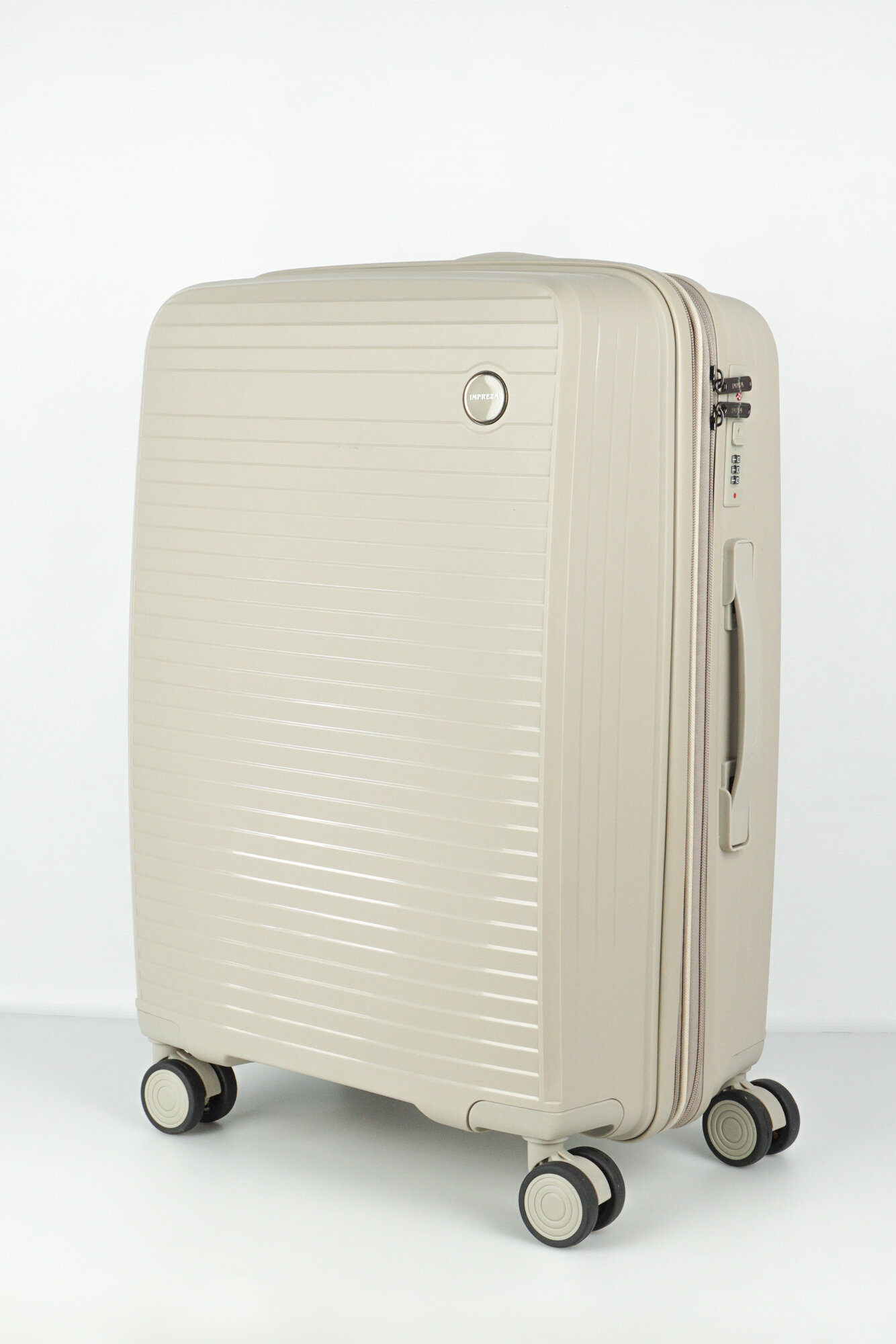 Купить Чемодан Sweetbags средний из полипропилена с расширением на 4-х колесах с TSA замком (Панцирь) бежевый M+