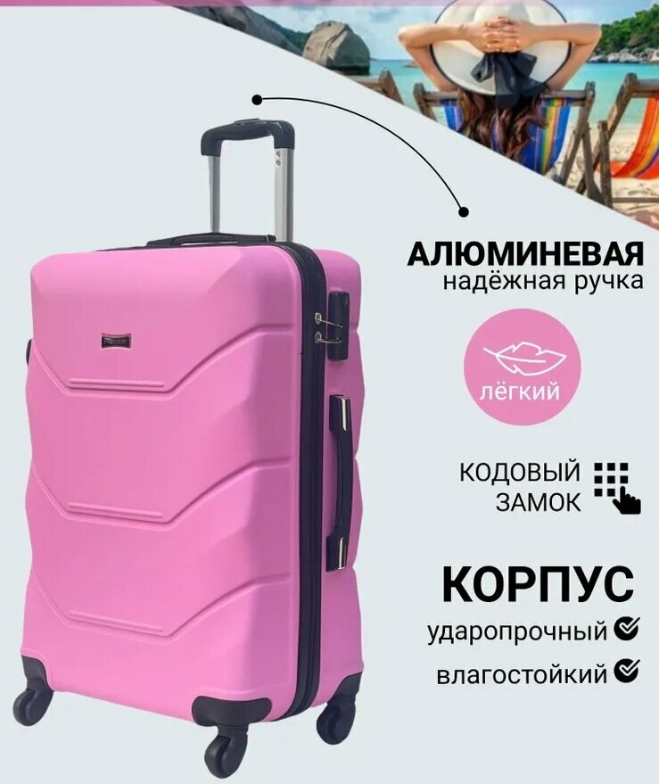 Чемодан FreeDom, розовый, L, ударопрочный, 4 колеса