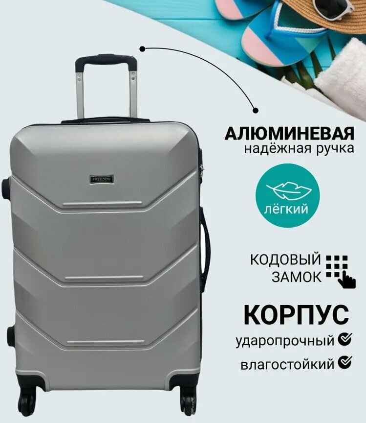 Чемодан FreeDom, серого серебристого цвета, L, ударопрочный, 4 колеса