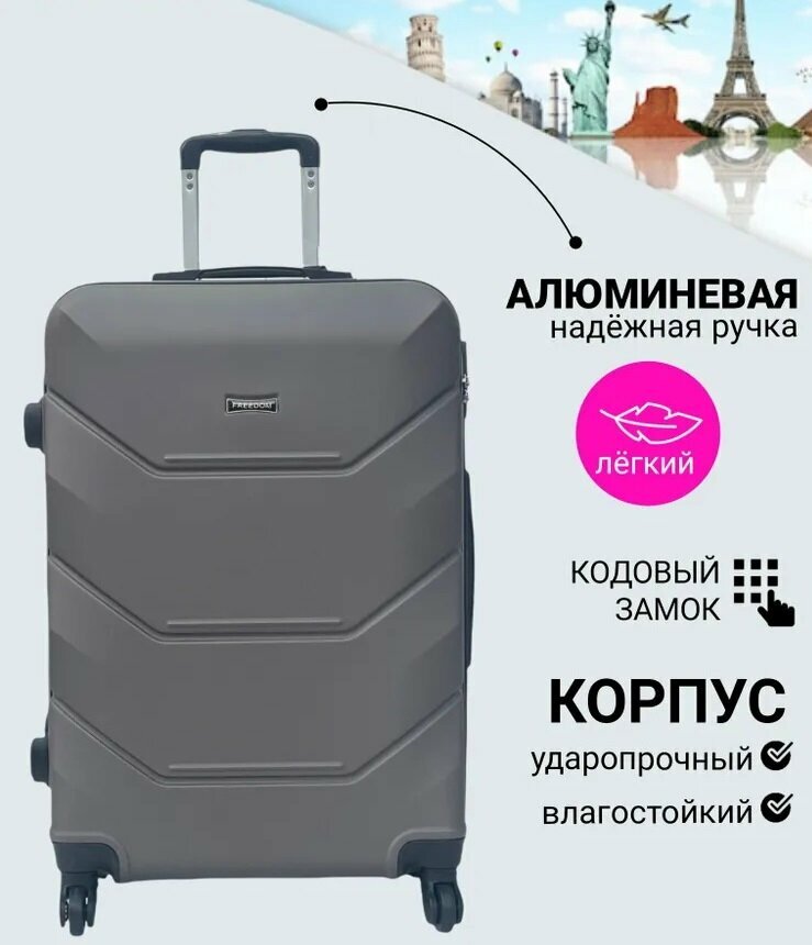 Чемодан FreeDom, серого серебристого цвета, L, ударопрочный, 4 колеса