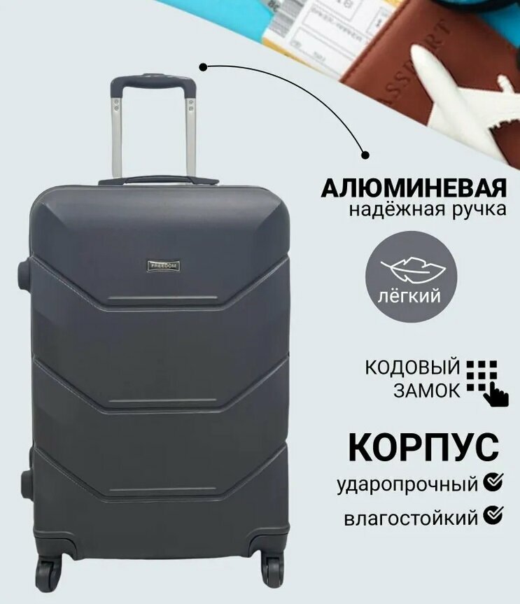 Купить Чемодан FreeDom, черный, L, ударопрочный, 4 колеса