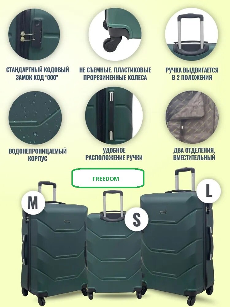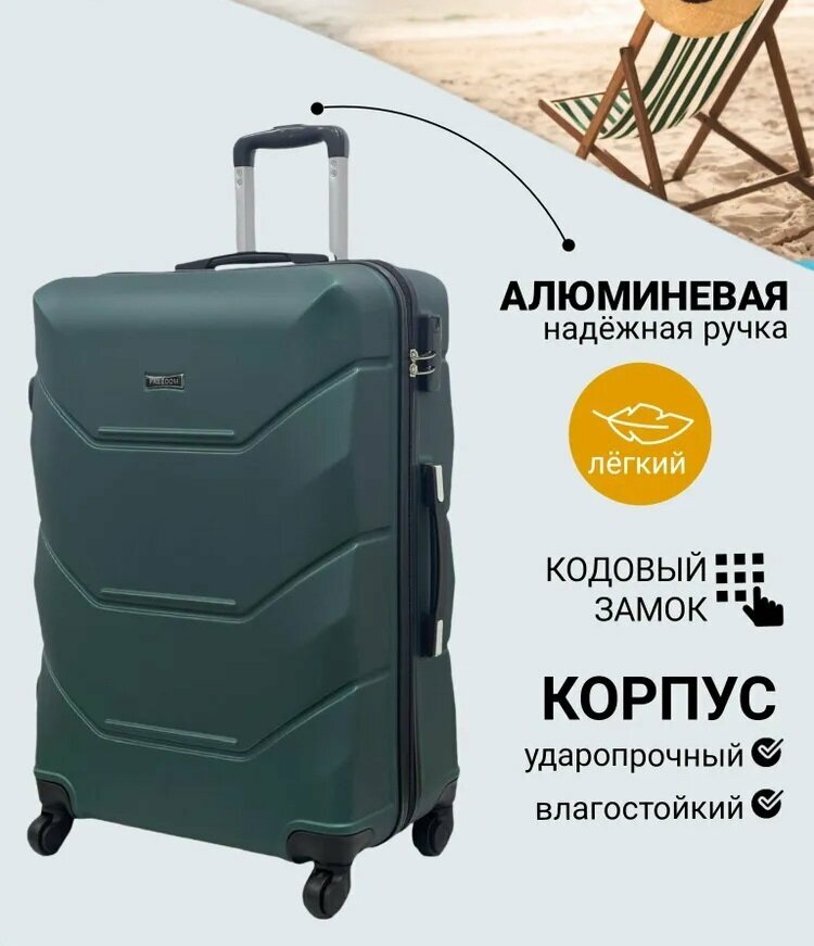 Купить Чемодан FreeDom, темно - зеленого цвета, L, ударопрочный, 4 колеса