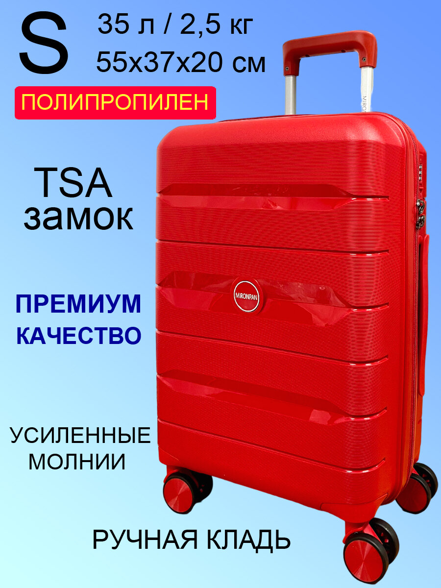 Купить Чемодан из полипропилена MIRONPAN, ручная кладь S, 55 см, 35 л, красный
