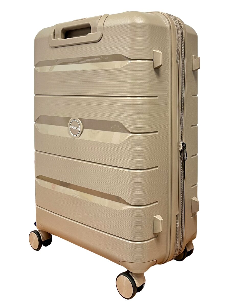 Чемодан из полипропилена MIRONPAN, средний М, 64 см, 70 л, увеличение +5 см, бежевый