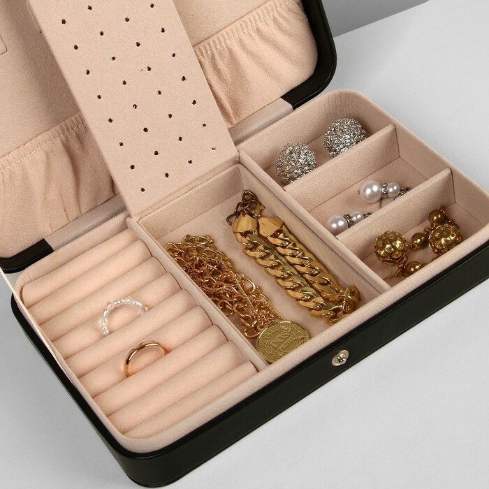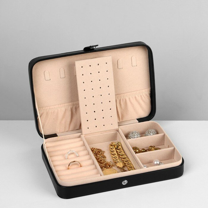 Органайзер для украшений "Шкатулка портативная", 9 полос, 3 места, 14*21*4,5см ,цвет чёрный интересное: