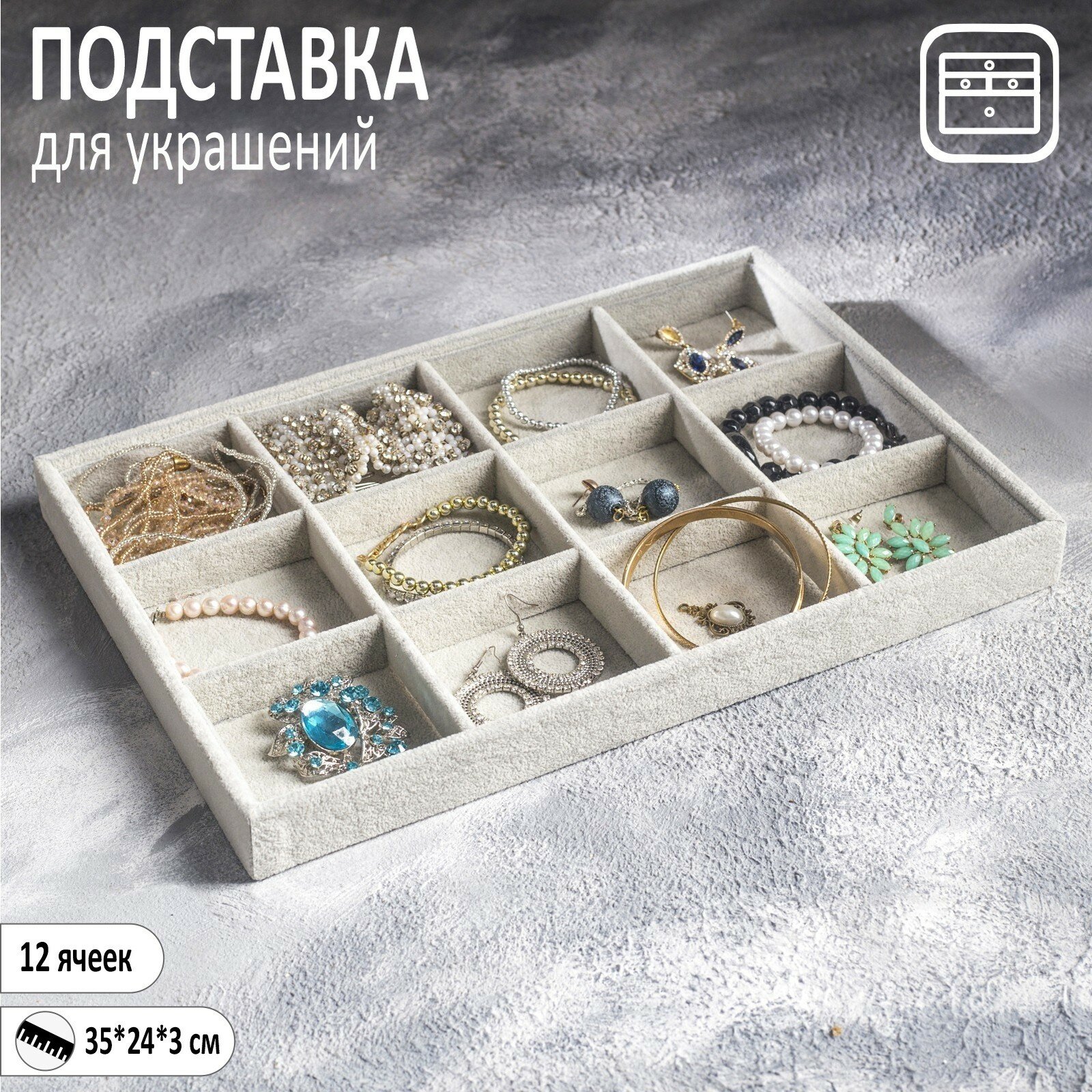 Купить Подставка для украшений 12 ячеек, флок, 35×24×3, цвет серый