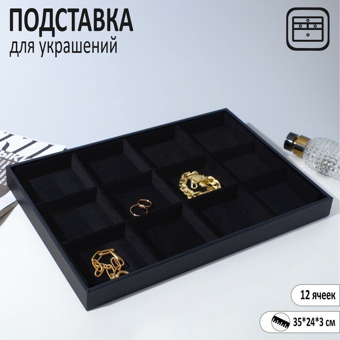Подставка для украшений 12 ячеек, флок, 35*24*3, цвет чёрный 1844081