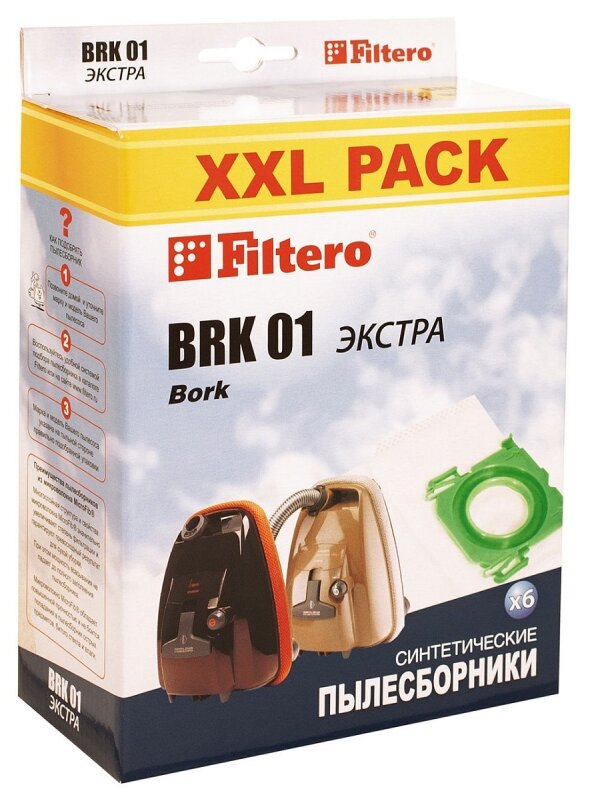Мешки-пылесборники Filtero BRK 01 XXL Pack Экстра, для пылесосов Bork, синтетические, 6 штук