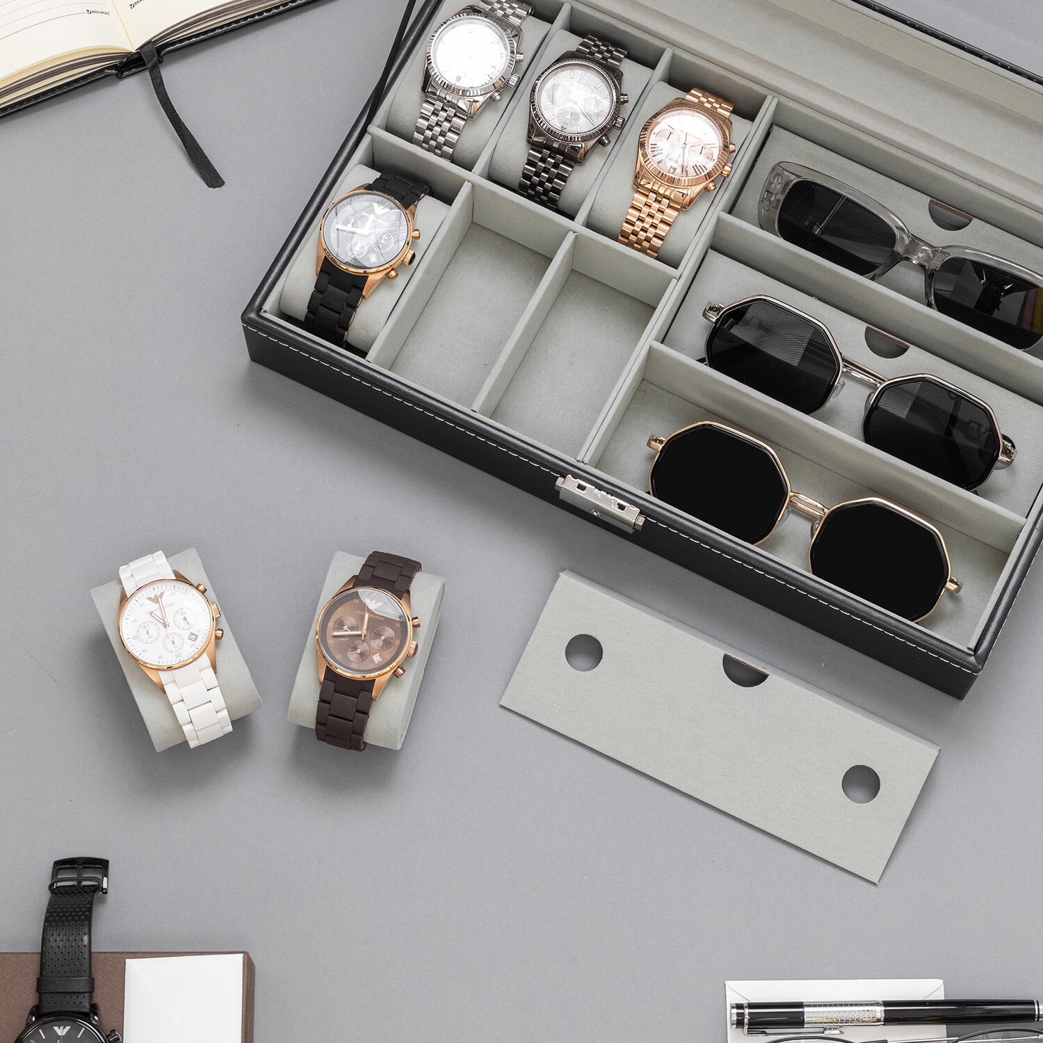 Шкатулка для хранения 6 наручных часов и 3 очков CloxBox W75-B Черная экокожа интересное: