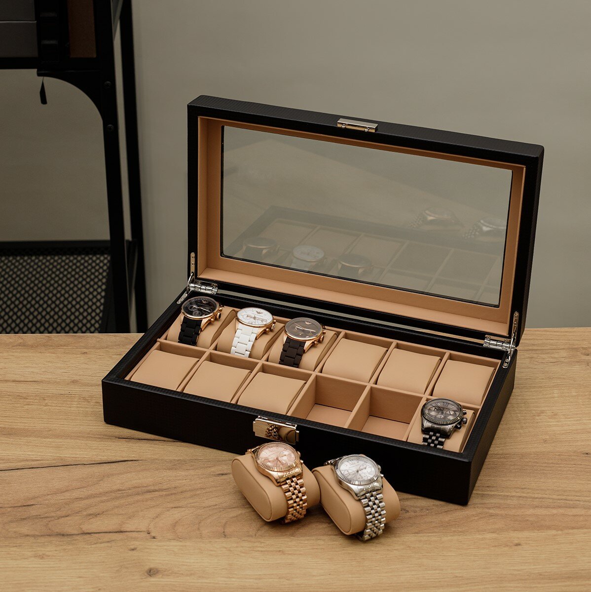 Шкатулка для 12 наручных часов CloxBox W100-C Черная интересное: