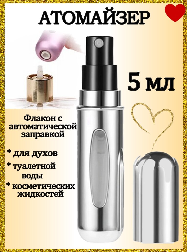 Атомайзер флакон для духов и парфюма 5 мл серебристый металлик. интересное: