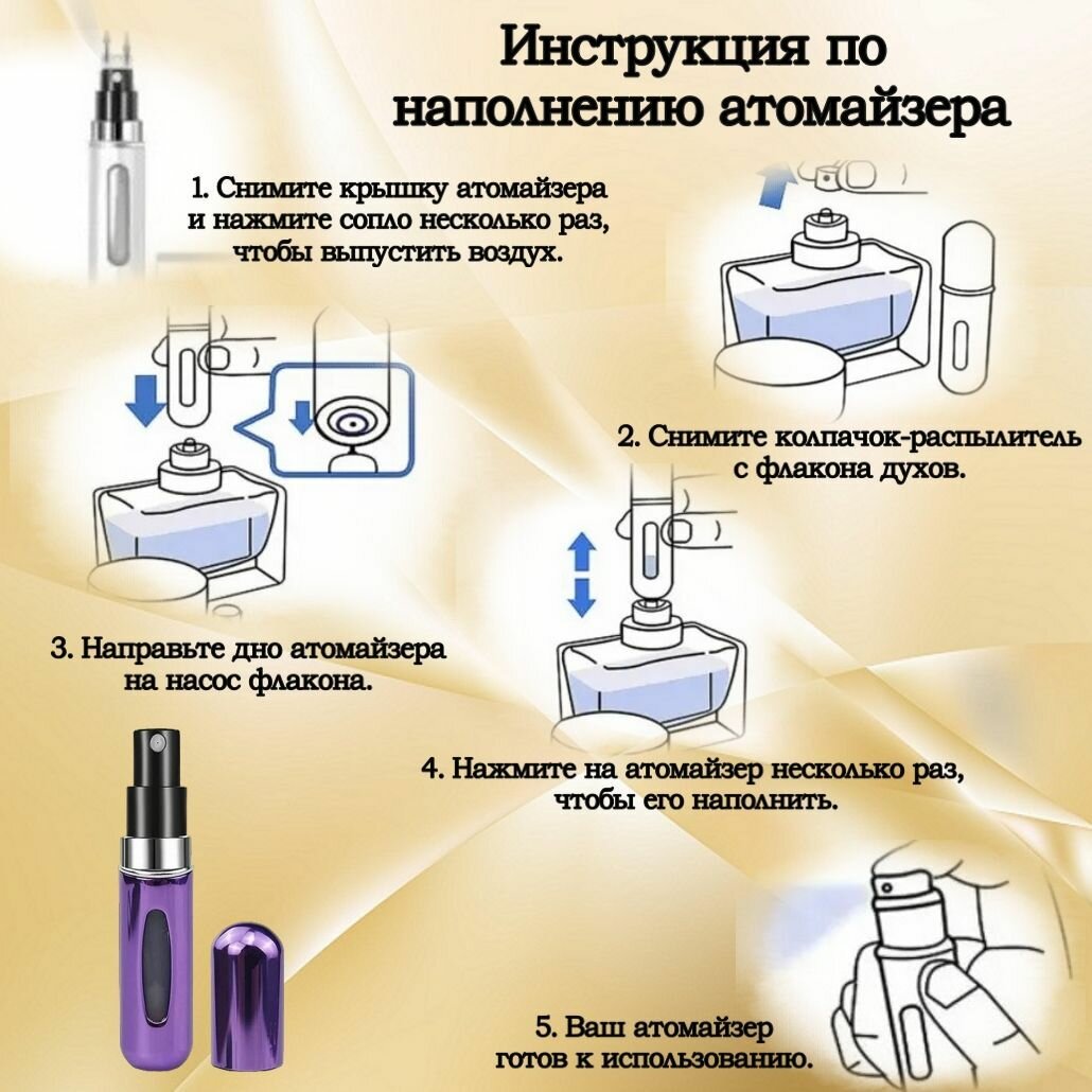 Атомайзер флакон для духов, парфюма, антисептика, 5 мл фиолетовый металлик интересное: