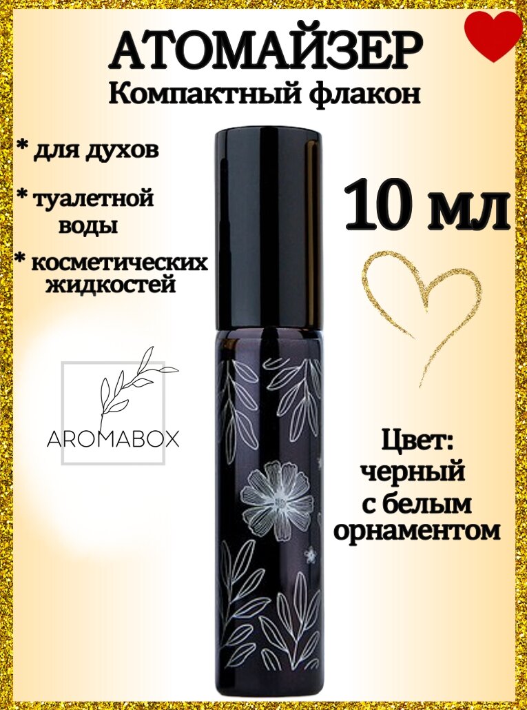 Атомайзер флакон для духов, парфюма, антисептика, 10 мл, черный с белым орнаментом. интересное: