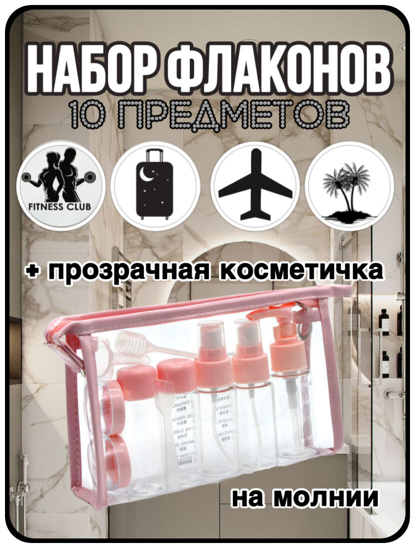 Дорожный набор флаконов для путешествий розовый интересное: