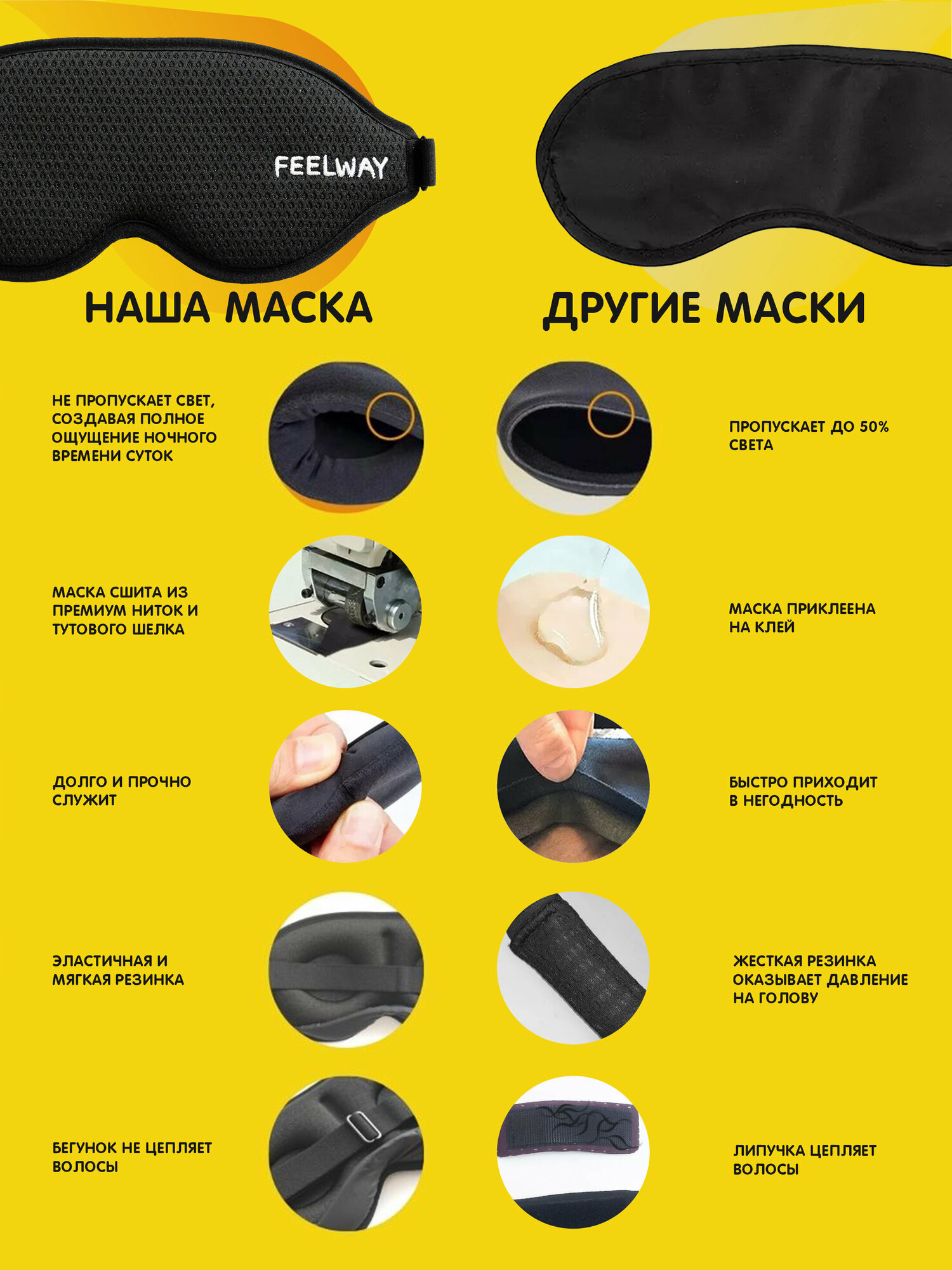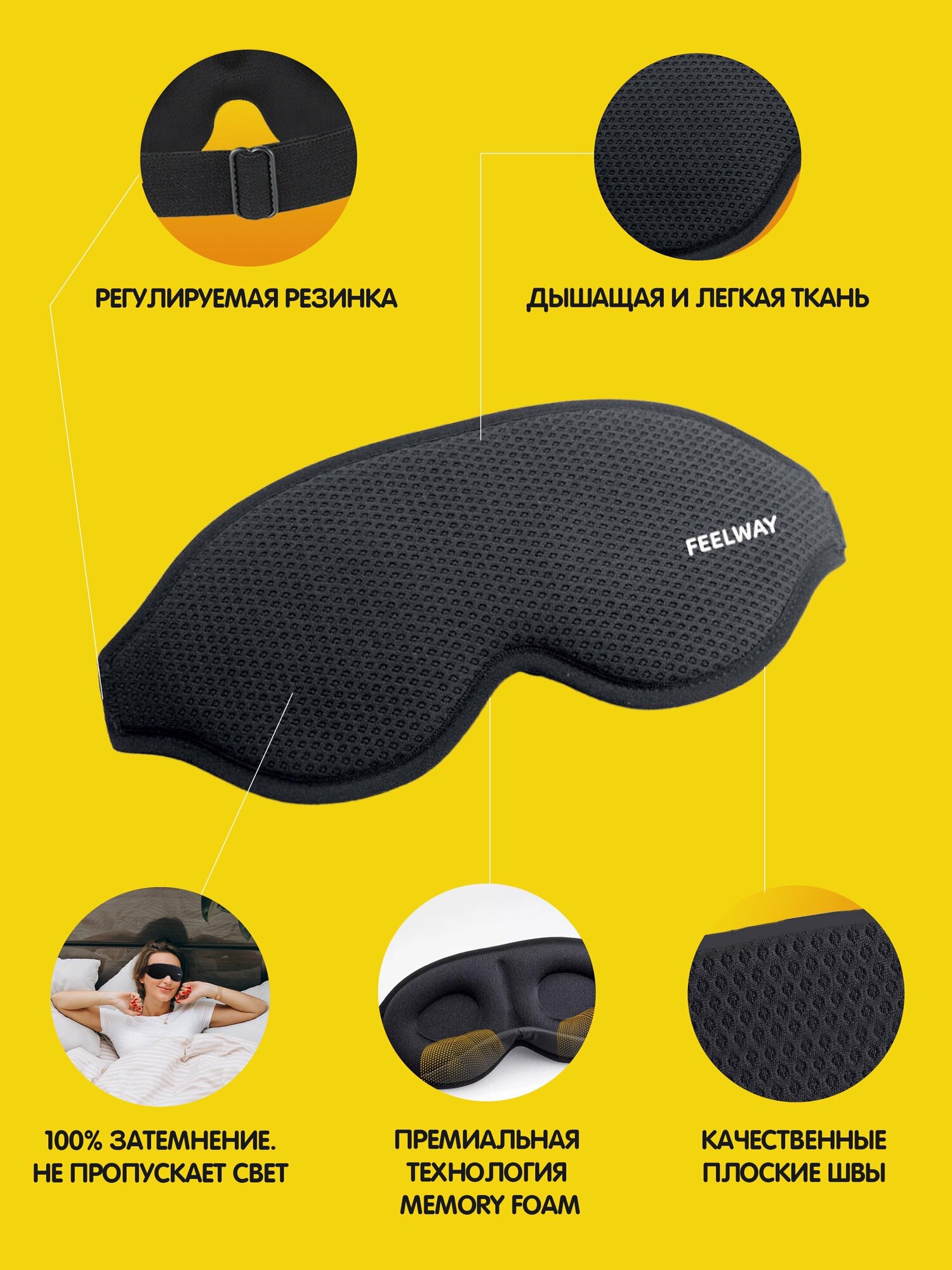 Маска для сна FEELWAY, 1 шт., черный