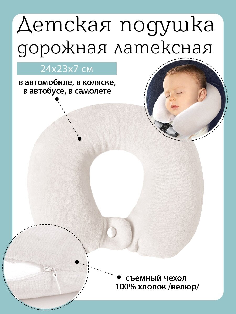 Купить Подушка автомобильная детская для шеи, дорожная, в коляску, в автомобиль, в самолет, для путешествий из латекса 23х21х6 антистресс