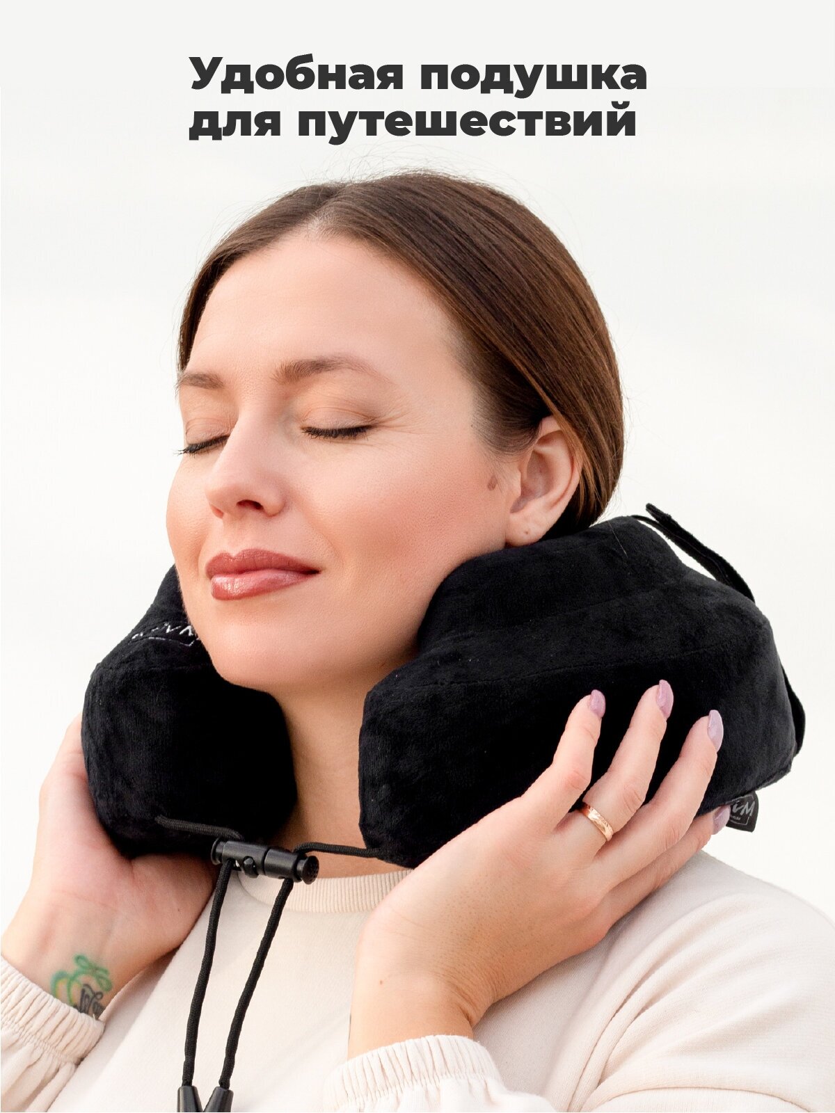 Подушка для путешествий Premium - подушка для шеи, подушка туристическая, подушка в самолет для шеи, дорожная подушка для шеи черный интересное:
