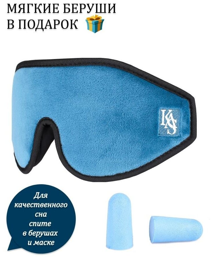 Маска для сна KAS Sleep, 1 шт., синий, черный интересное: