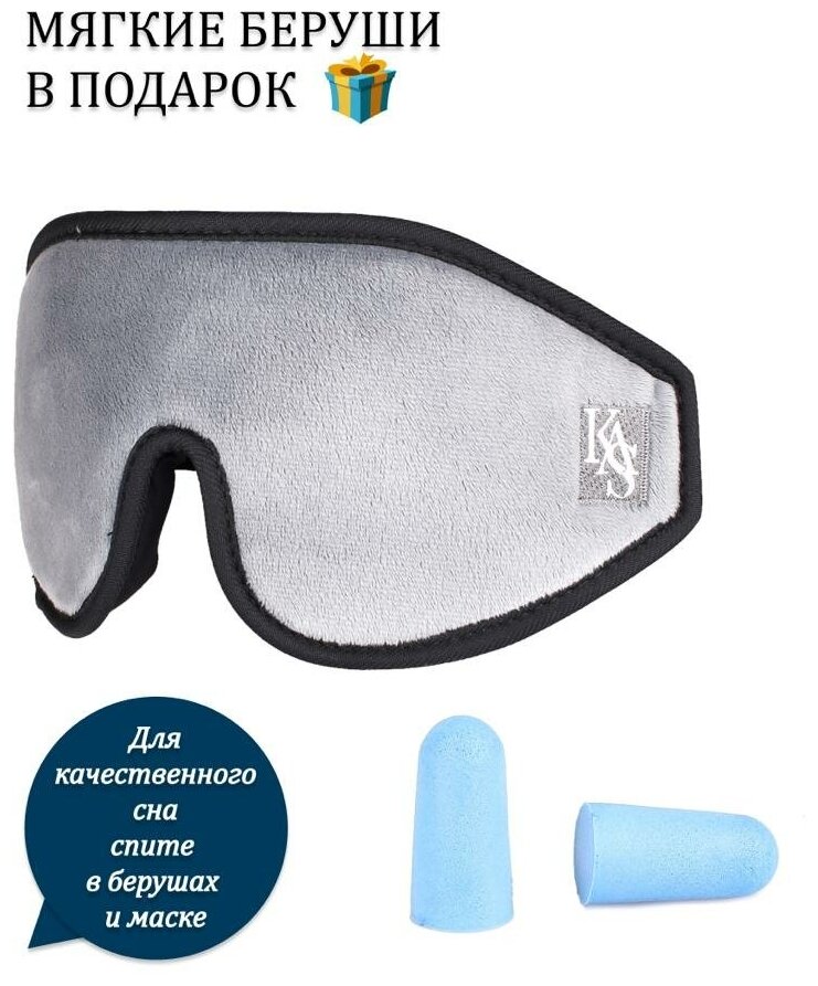 Маска для сна KAS Sleep, 1 шт., серый, черный интересное: