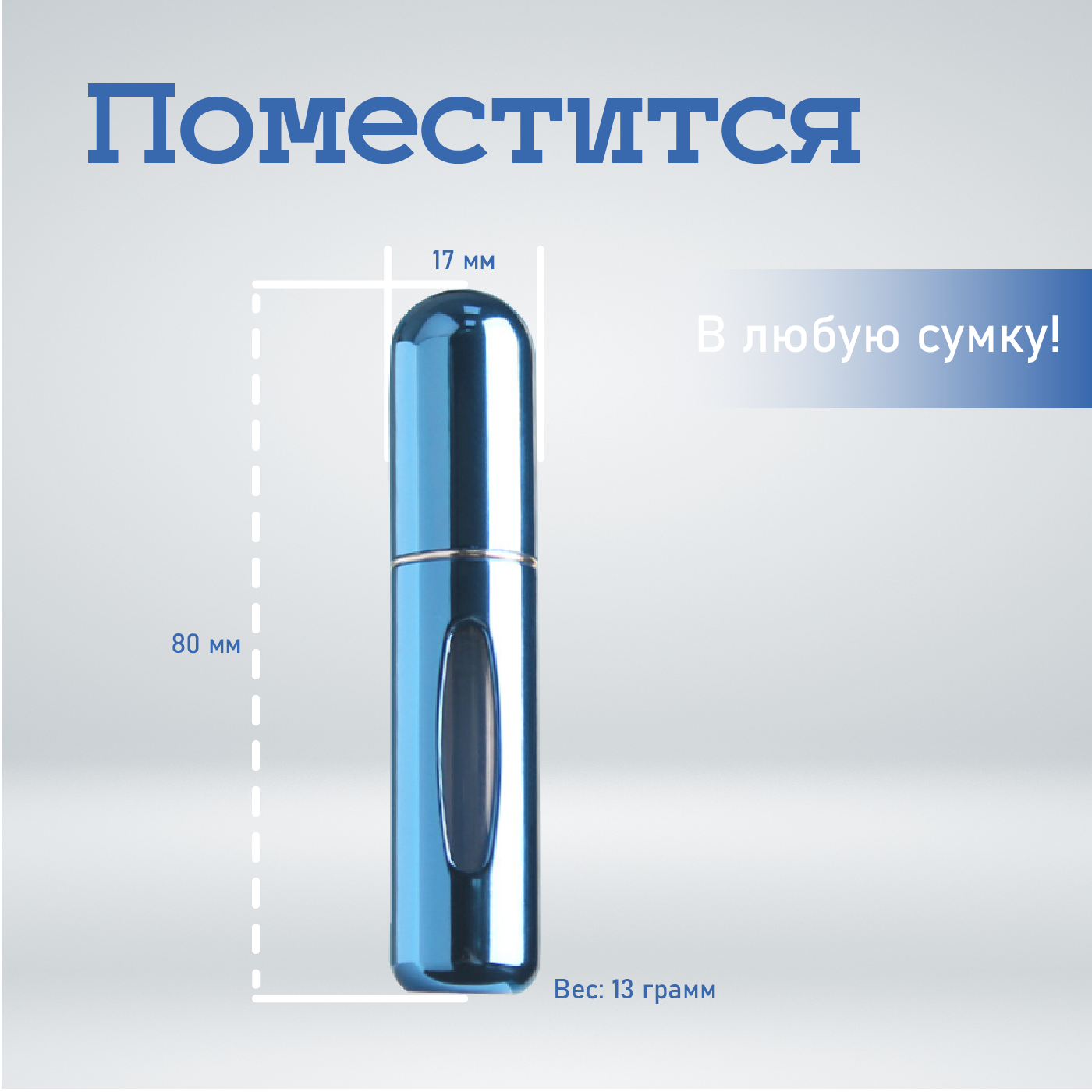 Атомайзер (флакон для духов) алюминиевый накачиваемый, глянцевый, 5 мл, синий интересное:
