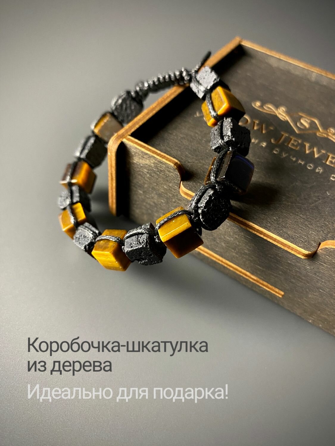 Браслет мужской из натуральных камней тигровый глаз и лава куб плетеный оберег на руку подарочная упаковка