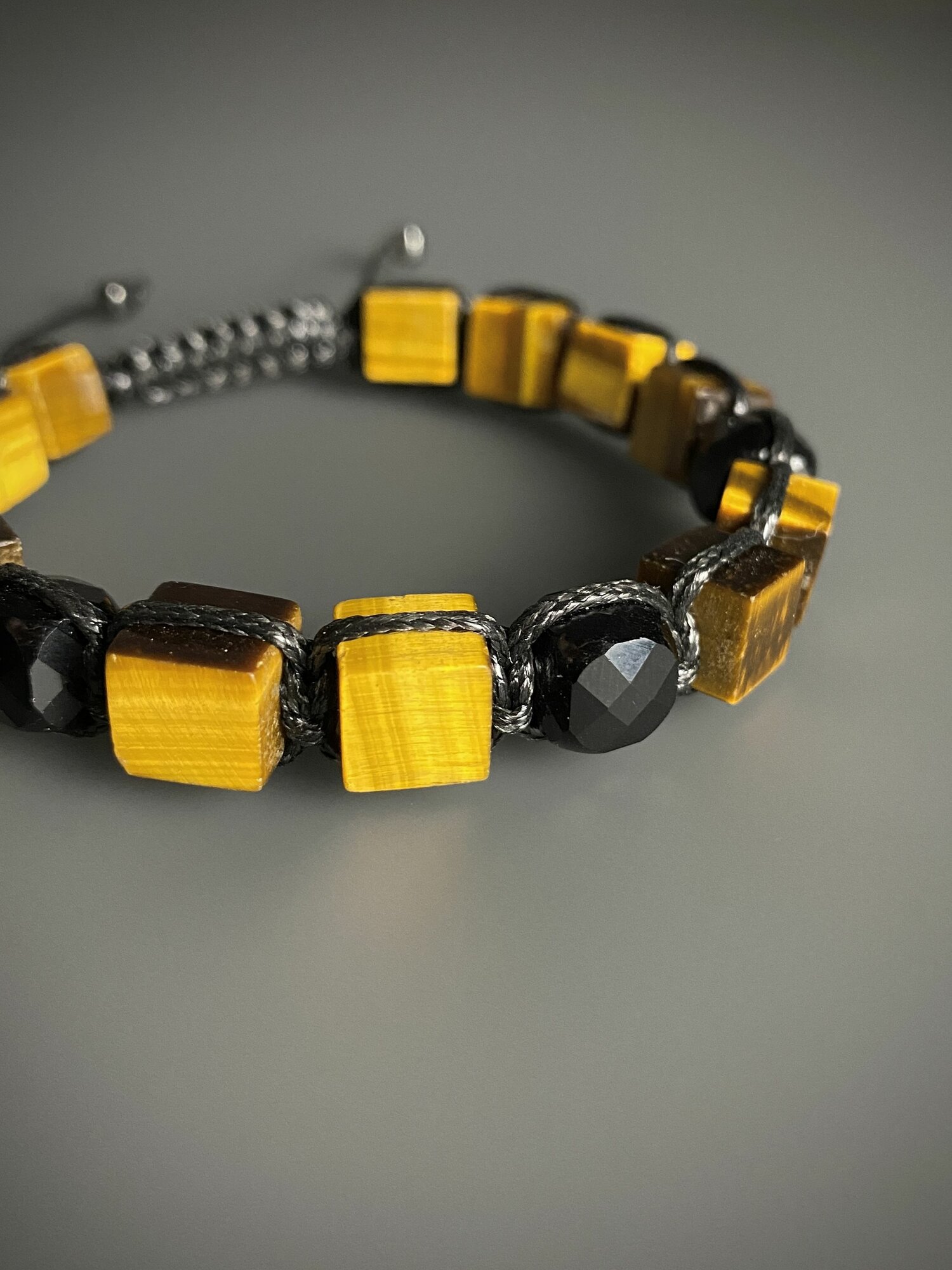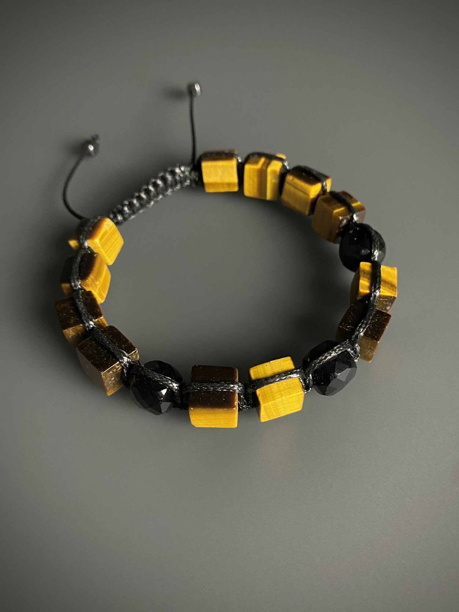 Браслет из натуральных камней агат и тигровый глаз граненый