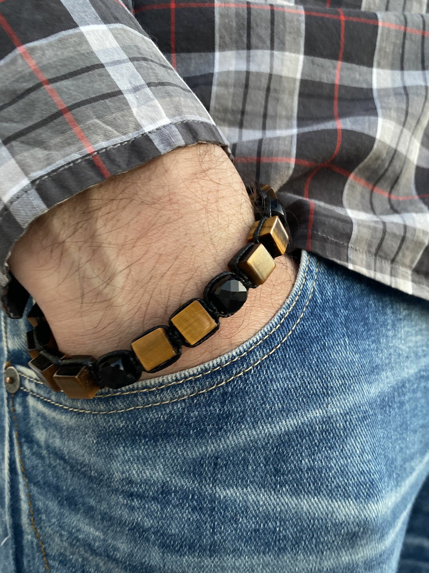 Подарок мужчине браслет куб квадрат из натуральных камней мужской яшма и лава / Браслет плетеный шамбала-18-22