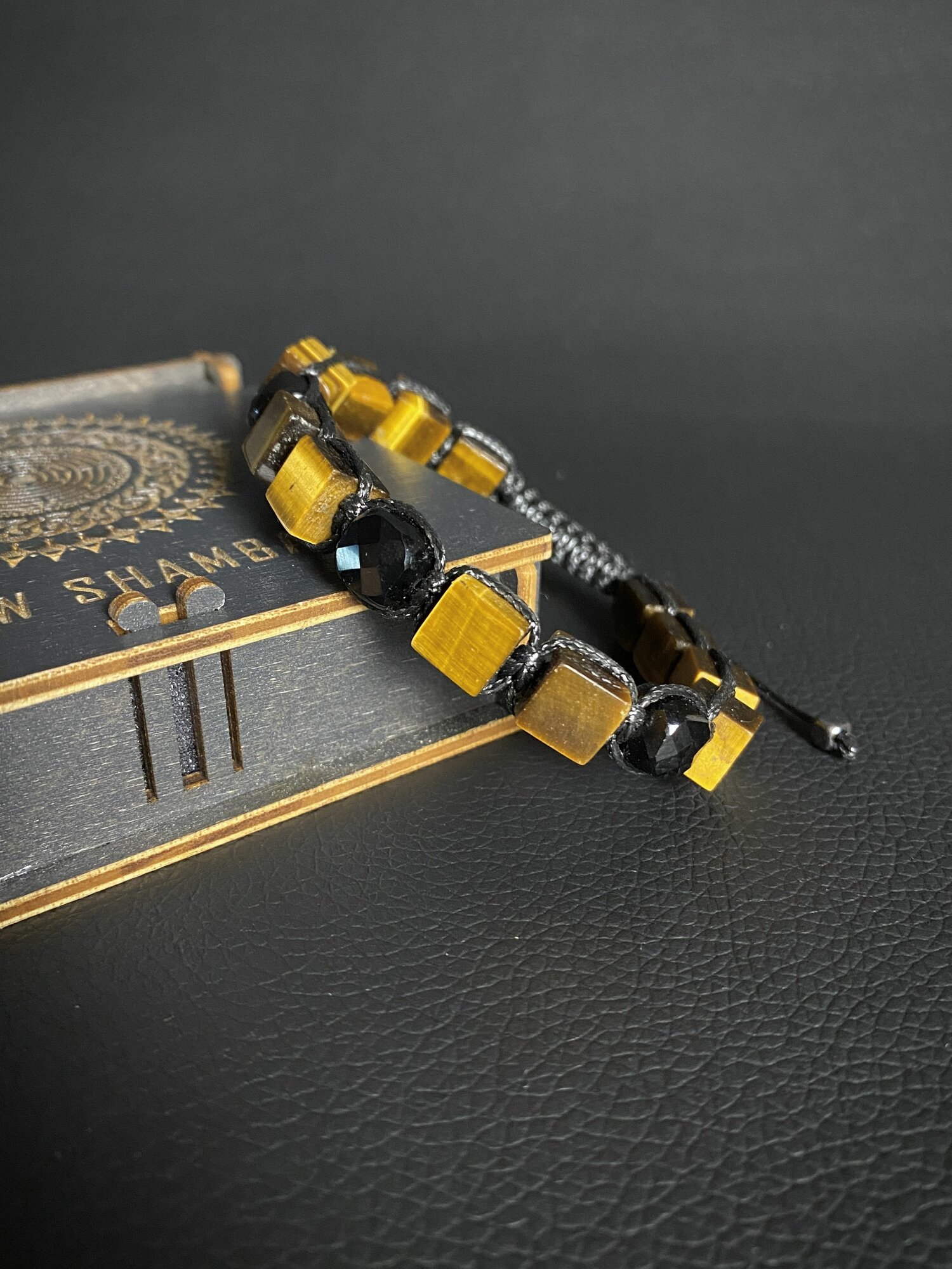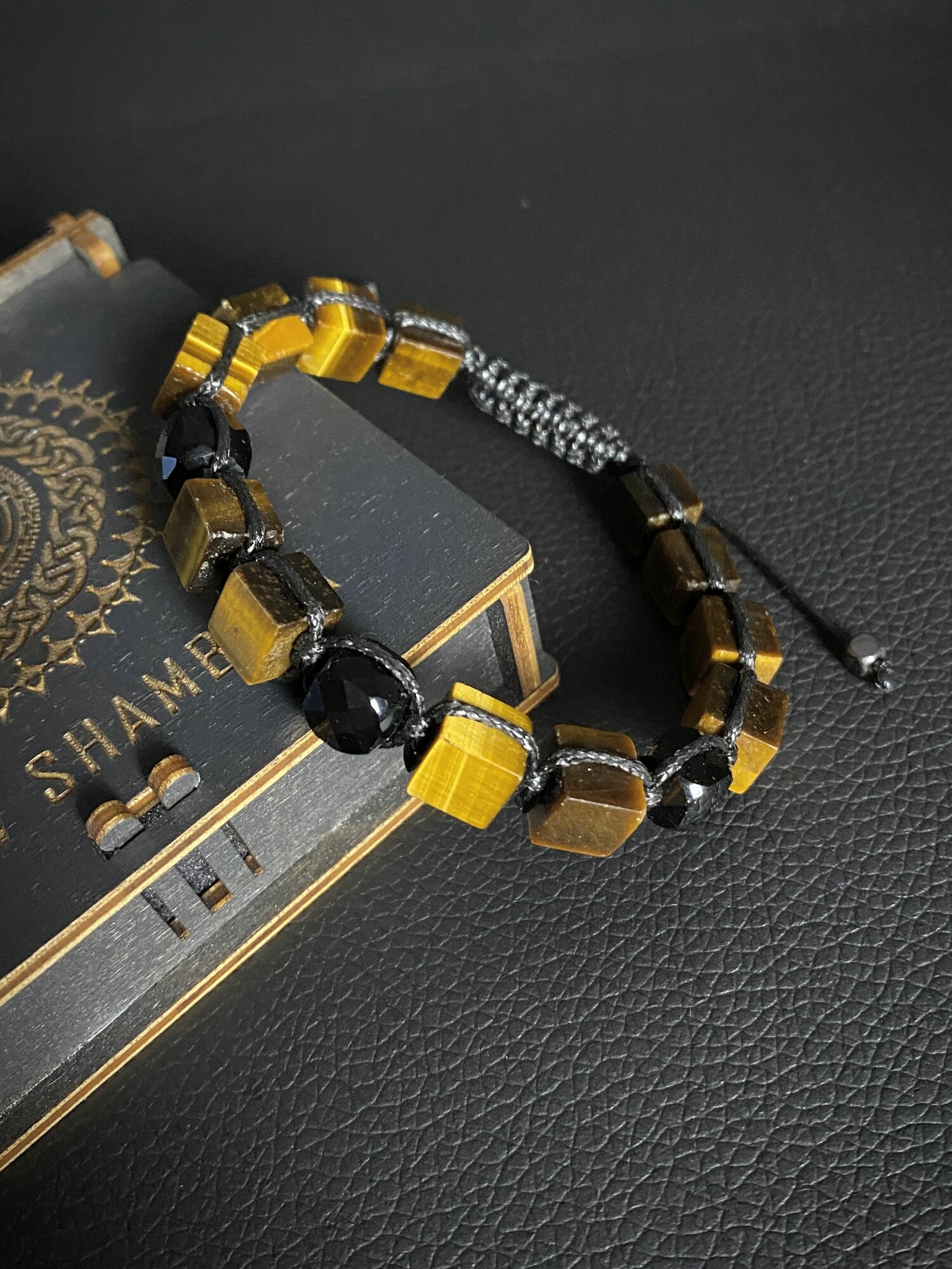 Браслет куб квадрат из натуральных камней мужской яшма и лава / плетеный шамбала