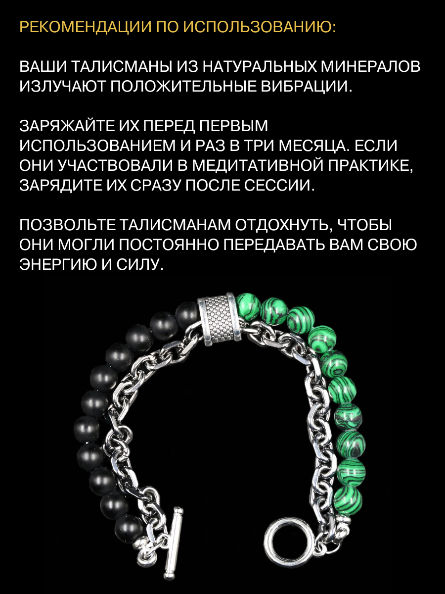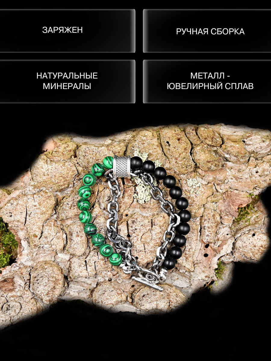 Купить Браслет-талисман с черным агатом и малахитом